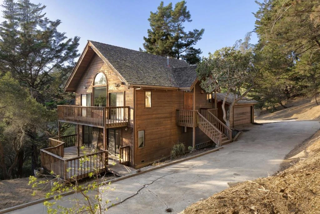 Tucked in the hills of Aptos Hills-Larkin Valley is a unique three story home waiting for a little bit of TLC. The foundation and framework are in good condition; a wonderful opportunity for someone to implement their design esthetic to truly make it their own. Built in 1987, this single-owner home sits on a 6 acre lot and has 3 bedrooms and 3 bathrooms. Constructed in a reverse floor plan, the top entry level gives you the essence of a Lake Tahoe property with vaulted wood exposed ceilings, a loft area with a small bonus room attached, and large windows to view the beautiful surrounding trees. As you head down to the second floor, you will find all of the bedrooms with a master bedroom that includes an ensuite and reasonably sized closet. The third floor has a huge bonus room that could be the perfect playroom, game room, or whatever type of room you desire. Other features include accent fireplaces, private driveway, and enclosed garage. A lot of land and house for a fair price!