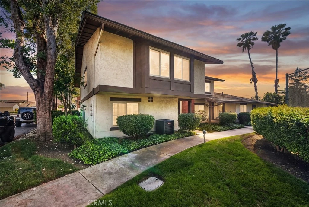 Amazing opportunity to own a meticulously maintained, spacious end unit. This is the largest floor-plan in Aspen Village featuring 3BD/2.5 BA in 1,652 square feet. This gorgeous townhome is an END UNIT, located toward the back of the community and adjacent to the tennis courts. As you enter the spacious floor plan, you are greeted by a large living room with vaulted ceilings and fireplace. The first floor also features a kitchen with a large garden window looking out on to the spacious, private patio and a formal dining room, with built-in cabinets and utility closet. There is also a large den (which could be converted to a 4th bedroom), a laundry room and a half bathroom. The second floor features a large primary suite with remodeled bathroom and ample closet space. Upstairs there are also two additional bedrooms and full bathroom. This home is well maintained, complete with a new HVAC system, dual pane windows and several rooms with plantation shutters. There are two patios, one off the dining room, and one large, covered patio off the living room. The back patio leads to a 2-car garage for private access. The garage also features built-in cabinets for ample storage. This fantastic community boasts well-landscaped common grounds with streams, mature trees, and walking paths winding throughout. Additional community features include: pool, spa, clubhouse, sauna, exercise room/gym and tennis courts. Homes like this are a fabulous opportunity! Located close to everything, including schools, shopping, freeways and parks. This home is a wonderful opportunity! This wonderful home is a MUST SEE!