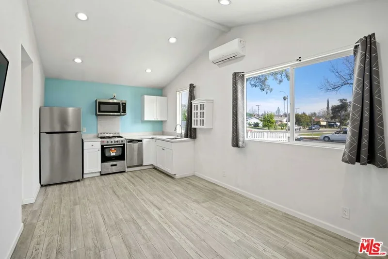 Modern and well maintained ADU located in a quiet West Hills neighborhood with private entrance and bright open layout. High ceilings in the living room and kitchen area create an open and airy feel with abundant natural light throughout. The kitchen features stainless steel appliances including refrigerator, gas range, microwave, and dishwasher, along with modern cabinetry and quartz countertops. In unit washer and dryer provide everyday convenience. Multi zone ductless mini split system delivers efficient heating and cooling in both the living area and bedroom. The bathroom showcases updated finishes and a tiled shower. Comfortable, low maintenance living in a peaceful residential setting. Move in ready.