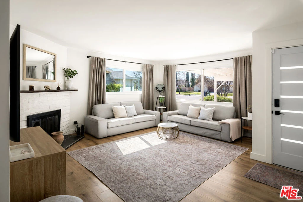 With a hint of Palm Springs, this tastefully updated, bright, single-story home feels like a private oasis in West Hills. Ideally situated on a large lot with over 2,000 sqft of living space, the house has an optimal layout with a classic, California indoor/outdoor flow. A spacious living room leads directly to an open concept dining room and kitchen, which spill out to a sprawling back yard featuring multiple sitting areas and a sparkling pool that puts all those basic kidney shaped pools to shame. Back inside, four bedrooms are tucked away down the hall, creating a nice divide between communal and private spaces. The last bedroom, currently serving as an office, opens to an enormous bonus space with soaring ceilings and a wet bar, just waiting for your creative vision. Game room, home studio, playroom, ADU? The possibilities are endless, especially since it has its own second, private entrance. Located just around the corner from top rated schools, shopping, dining and entertainment, you won't want to miss out on this one.
