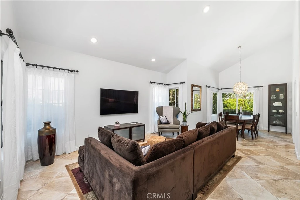 Seeking privacy, resort-style living, and breathtaking sunrise views? Welcome home! A charming covered stone porch invites you into this immaculate, freshly painted four-bedroom, three-bath residence designed for both comfort and entertaining. The living room and formal dining area showcase soaring cathedral ceilings and are complemented by a granite-topped wet bar that also serves the adjacent family room. The gourmet kitchen is a chef’s dream, featuring a Viking oven with grill and gas cooktop, microwave, beverage refrigerator, granite countertops, and a breakfast bar. The kitchen opens seamlessly to the warm and inviting family room, highlighted by a classic brick fireplace. The primary suite is a true retreat with cathedral ceilings, an expansive closet with built-ins, and a luxurious bathroom featuring marble countertops, dual sinks, and a dedicated vanity area. Upstairs, two additional bedrooms offer ceiling fans and mirrored wardrobe closets. The fourth bedroom (currently being used as an office) is conveniently located downstairs with direct access to a beautifully remodeled three-quarter bathroom—perfect for guests or multigenerational living. Throughout the home, abundant dual-pane windows flood the interiors with natural light and capture stunning views of the sunrise, mature trees, and mountains beyond. Walls of glass open to an entertainer’s backyard complete with a spacious patio, sparkling pool, and relaxing spa—ideal for indoor-outdoor living. Additional highlights include a three-car garage, an extra-large driveway with ample parking, and a prime location in a desirable West Hills neighborhood. Enjoy access to some of the finest schools in the West Valley, including El Camino Real Charter High School, Hale Charter Middle School, and Pomelo Community Charter Elementary.