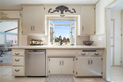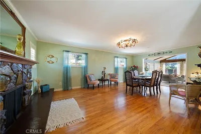 Refined urban living without the traffic, noise, and congestion and still have space for your RV. This beautifully maintained single-story 1960s Mid-Century home is nestled on a tree-lined street with mountain views and showcases numerous thoughtful upgrades completed over the years. A double-door entry with etched glass welcomes you into a formal foyer that opens to a spacious living room with gleaming hardwood floors. The living room features a stunning stone wood-burning fireplace with wood mantel, plantation shutters, crown and base moldings, and a formal dining area. The captivating family room is highlighted by dramatic beamed ceilings, expansive picture windows, and seamless indoor-outdoor flow. Fiberglass doors lead to a private backyard, perfect for entertaining, al fresco dining, or relaxing evenings with family and friends. The open kitchen offers a generous breakfast area, custom wainscoting, crown molding, and ceramic tile floors. Designed for the home chef, it includes a stainless gas cooktop with high-BTU burner, double oven, and GE Profile dishwasher. A charming garden window overlooks the backyard and mountain views. Seamless composite countertops, backsplash, and double sink provide durability and a clean, modern aesthetic. Adjacent to the kitchen is an oversized laundry room with abundant storage, pantry space, utility closet, and direct backyard access. Additional features include smooth ceilings, newer copper plumbing, RV access and parking, partial dual-pane windows, newer roof (2024), newer sewer line (house to street), updated AC, landscaping, automatic sprinklers, attic storage, upgraded insulation, and a gable cooling fan. Hardwood floors enhance most rooms, and bedrooms offer mirrored closet doors and ceiling fans. The remodeled hall bath features a stylish vanity, clawfoot tub with freestanding faucet, rain shower, sconce lighting, and ceramic tile floors. The primary suite includes a private bath with vintage-style corner vanity, updated shower enclosure, and newer flooring. Outside, enjoy a wide side yard with RV access ideal for cars, boats, or recreational vehicles plus a brick ribbon driveway, double iron gate, newer garage door, 50-gallon water heater, open tiled patio, and newly sodded lawn. Close to hiking and biking trails, Orcutt Ranch, highly regarded schools, shopping, and dining. Convenient access to the 101 and 118 freeways in a neighborhood known for long-term residents and a strong sense of community.