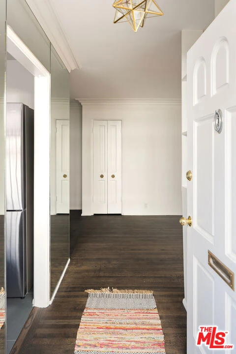 West Hollywood Gem :: In the coveted Cory Apartments :: Private Garden | 1 BD / 1 BA | 860 Sq Ft. Charming one-bedroom retreat in prime West Hollywood with gated private entrance through a beautiful brick walkway. Sun-drenched living room with dark hardwood floors and large sliding glass door opening to your own private fenced garden. Kitchen features quartz countertops, slate floors, farm sink with brass hardware, stainless steel appliances, and a garbage disposal. Renovated bathroom with original vintage tile, large soaking tub, and glass shower door. Thoughtful details include original crystal chandeliers, recessed lighting, blackout shades, and abundant built-in storage. In-unit washer/dryer, mini-split A/C and heating, one carport space, Ring doorbell, and on-site manager. Steps from Soho House, Boa, and the flats of Beverly Hills.