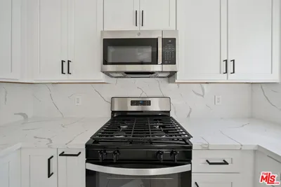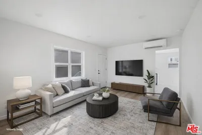 Beautifully renovated upper-level 1bedroom in prime West Hollywood featuring modern upgrades, abundant natural light, and a stylish contemporary layout. The kitchen includes stainless steel appliances, quartz counters, shaker cabinetry, and chic black fixtures. The spacious living area and bedroom are each equipped with mini split A/C units. The updated bathroom offers a sleek walk-in shower with glass enclosure, matte black hardware, and a built-in shower bench. This unit includes in-unit laundry and one assigned parking space. Pets are permitted subject to owner approval. Tenant pays electric, gas, and trash. Owner pays water. Located near Melrose Avenue, Fairfax Village, The Grove, Whole Foods, Trader Joe's, and numerous cafes, gyms, and local attractions. Square footage not verified.