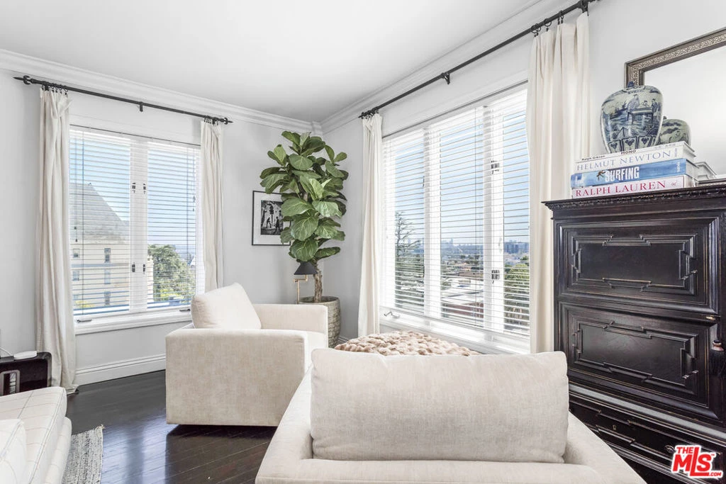 Available for both short and long term. Discover an exquisitely updated and meticulously maintained corner unit designed by Oscar winning actor and renowned real estate developer, Jeremy Renner, at the historic Granville Towers, offering sweeping panoramic city and hillside views. Experience old-school glamour and luxury in a residence that rivals a five-star hotel. Constructed in 1930 by renowned architect Leland Bryant, famed for the Sunset Tower Hotel, Granville Towers has long attracted Hollywood's elite much like the nearby Chateau Marmont. This charming residence features 3 bedrooms and 3 bathrooms, beautifully appointed with Ann Sachs tile and rich, dark hardwood floors, with high ceilings and an ideal floorplan. The living room benefits from double window exposure, flooding the space with natural light, while the formal dining room provides an elegant setting for entertaining. The chef's kitchen is equipped with custom cabinets and top-of-the-line stainless steel appliances. The primary suite boasts a stunning spa-like bathroom with a vintage clawfoot tub and a separate walk-in shower, featuring custom Waterworks fixtures. The residence comes fully furnished with a curated collection of luxurious designer pieces, reflecting the style and sophistication of classic Hollywood glamour. The building offers beautiful gardens, outdoor patios, and a doorman. Its prime location provides close proximity to world-class shopping and entertainment in West Hollywood and the legendary Sunset Strip.