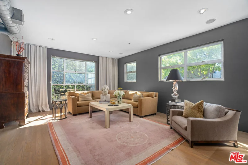The Lofts at Melrose Place. Discretely located off of West Hollywood's most iconic street, this previously published designer-owned residence places you moments from world-renowned Melrose Place boutiques, cafes, shopping, acclaimed dining and the recognizable Sunday Farmers Market. The setting is a walker's paradise. Located in a prestigious private-ownership building, the property is known for its discretion, strong management and notably low HOA dues. Loft 101 is considered one of the building's most desirable units. Soaring 11.5-foot ceilings create dramatic volume, balanced by a layout that feels both open and refined. It is an entertainer's dream. The interiors have been professionally curated, featuring custom cabinetry, hand-made glass tilework and elegant travertine finishes in the primary bath. Newly refinished white oak floors bring warmth and architectural continuity. Two en-suite bedrooms anchor the floor plan, one styled as a sophisticated home office, while a reimagined service area introduces a pantry, bar and separate laundry room. The spacious primary suite is a perfect sexy retreat. Beyond the interiors, a private terrace overlooks a beautifully landscaped garden. Abundant garage storage and two side-by-side parking spaces complete this polished West Hollywood offering.