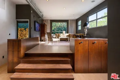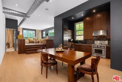 The Lofts at Melrose Place. Discretely located off of West Hollywood's most iconic street, this previously published designer-owned residence places you moments from world-renowned Melrose Place boutiques, cafes, shopping, acclaimed dining and the recognizable Sunday Farmers Market. The setting is a walker's paradise. Located in a prestigious private-ownership building, the property is known for its discretion, strong management and notably low HOA dues. Loft 101 is considered one of the building's most desirable units. Soaring 11.5-foot ceilings create dramatic volume, balanced by a layout that feels both open and refined. It is an entertainer's dream. The interiors have been professionally curated, featuring custom cabinetry, hand-made glass tilework and elegant travertine finishes in the primary bath. Newly refinished white oak floors bring warmth and architectural continuity. Two en-suite bedrooms anchor the floor plan, one styled as a sophisticated home office, while a reimagined service area introduces a pantry, bar and separate laundry room. The spacious primary suite is a perfect sexy retreat. Beyond the interiors, a private terrace overlooks a beautifully landscaped garden. Abundant garage storage and two side-by-side parking spaces complete this polished West Hollywood offering.