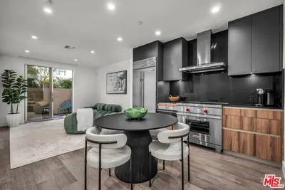 Sophisticated and effortlessly stylish, this 1-bedroom, 1-bath single-level residence showcases a rare, oversized private terrace perfectly designed for seamless indoor-outdoor living in one of the most coveted pockets of the Melrose District. Privately positioned with serene courtyard views and north-facing exposure, the home is filled with soft, natural light throughout the day.The spacious terrace extends directly from both the living area and the bedroom through two large sliding glass doors, creating a true indoor-outdoor lifestyle ideal for morning coffee, evening entertaining, or a relaxing retreat for your furry companion. Inside, the sleek, designer kitchen features Snaidero Italian cabinetry, premium Sub-Zero and Wolf appliances, and refined, eco-conscious finishes including Caesarstone countertops, Gessi fixtures, and a luxurious oversized shower. The well-appointed bedroom offers a generous walk-in closet, while a dedicated laundry area with a full-size stackable washer and dryer adds everyday convenience.Set on a picturesque, tree-lined street just moments from Melrose's top shopping, dining, and nightlife, The Ainsley offers the perfect blend of walkability and full-service living. Residents enjoy a curated collection of amenities, including concierge services, a stylish California lounge, and a fully equipped fitness center with dedicated yoga and training spaces.Resort-style amenities elevate the experience, with a state-of-the-art gym featuring Peloton bikes and free weights, private Pilates and massage studios, and an elegant resident lounge with bar seating and a media area for entertaining. Outdoors, a tranquil, Zen-inspired courtyard features twin Wolf BBQs and a communal dining table perfect for al fresco dining and social gatherings, with additional space for pets to enjoy the open-air setting.Additional highlights include secure entry and elevator access, as well as two tandem parking spaces in a gated garage and Ev charger, offering both convenience and peace of mind in this premier, design-forward community.