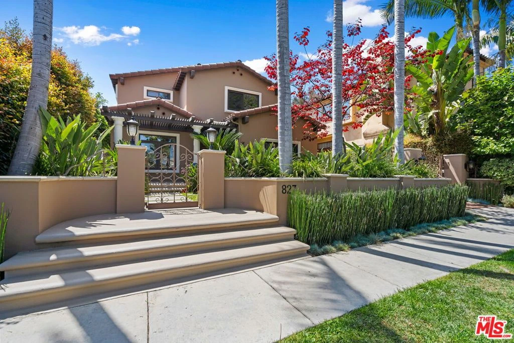 Welcome to 827 Huntley Drive, an elegant two-story Mediterranean home nestled in the heart of West Hollywood. This 2,618 square foot private oasis offers 3 bedrooms & 2.5 bathrooms. This property also has a detached space (399 square feet) with a kitchenette which is ideal for using while entertaining in the ultra-private backyard space, and/or as a private office/getaway. The formal living and dining rooms are perfect for entertaining, while the cozy family room with a fireplace is ideal for relaxation. The large chef's kitchen, complete with a breakfast room, is a culinary delight. Step outside to your own tropical paradise with a pool, and cascading spa. The expansive primary suite features a fireplace, walk-in closet, and a spa tub for a luxurious retreat. This gated property is a rare find, walking distance (walking score of 94) from West Hollywood's premier shops, eateries, and entertainment venues. Don't miss out on the chance to make this captivating property your own.