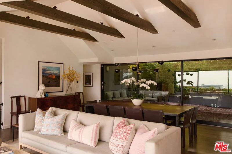 Set high above the city in the coveted Hollywood Hills, this three-story architectural retreat with Guest house is the epitome of refined Los Angeles living. Sprawling 180-degree panoramas stretch from the Downtown skyline to the Pacific Ocean and on the clearest days, Catalina Island graces the horizon. Tucked away behind lush, mature, and terraced landscaping on a private estate lot, the residence offers five sumptuous bedrooms and six baths, married with the serenity of a hideaway yet moments from the cultural energy of the city. Walls of glass dissolve the boundary between inside and out, while multiple terraces beckon the mild Southern California climate. The interiors glow with wide-plank wood floors, recessed lighting, and vaulted ceilings with exposed beams a warm, architectural counterpoint to ultra-modern finishes. At its heart, the chef's kitchen dazzles: a restaurant-grade La Cornue range anchored by custom oak cabinetry, dual dishwashers and premium fixtures frame a space made for effortless entertaining. Adjacent open dining and living zones flow seamlessly to an outdoor lounge and expansive deck a rare luxury in the Hollywood Hills and an entertainer's dream as the sun dips below the Pacific. A versatile TV room/den, complete with closets, offers the flexibility to serve as an additional bedroom ideal for guests or a private retreat. Upstairs, the primary suite unfolds like a resort retreat complete with walk-in closet, spa-inspired bath, and private terrace with sweeping views. Just off this level, the second terrace features built-in outdoor heaters perfect for year-round comfort while enjoying the breathtaking panorama. The third level presents a purposeful family room, wet sink and fridge for convenience, plus three uniquely finished guest bedrooms each with their own ensuite bath and generous storage. Enjoy ultimate convenience with a full laundry room downstairs and an additional laundry area complete with washer and dryer tucked neatly into the upstairs bathroom. Step outside and live as though on vacation every day: multiple terraces and patios, lounging zones, a shimmering pool and spa all arrayed to capture light and view. With the smart iAqualink system, pool and spa temperature and settings are controllable remotely pure ease and the automated fully retractable pool cover adds an extra layer of conveience and saftey. Two motorized sun-shades elegantly manage light and privacy throughout the day. Underpinning the beauty is serious forward-thinking infrastructure. Fully paid $30,000+ Tesla solar panels promote eco-conscious living while lowering energy cost. A whole-house water filtration system, whole-house fan, in-wall flat screens (three), Sonos sound zones (7 indoor, 4 outdoor), Nest cameras, Rachio irrigation system and a 240-volt NEMA 14-50 outlet in the garage for EV charging all converge in a home that's as smart as it is chic. A detached guest structure includes a full kitchen, bath and its own courtyard ideal for visiting friends, extended stays or a boutique home office. This is more than a home it's a statement of mega-design, technological intelligence and panoramic beauty. With its vantage from the heights of Los Angeles, it delivers luxury, sustainability, privacy and spectacle in equal measure. Truly a rare opportunity to own a hillside haven with views from downtown to the sea.