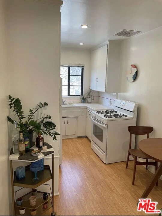 PARKING SPACE INCLUDED IN RENT. OWNER MANAGES BUILDING NO MANAGEMENT COMPANY. FULL SEPARATE KITCHEN (no galley) 5 CLOSETS IN THIS UNIT SMALL QUIET BOUTIQUE BUILDING IN THE HEART OF THE "NORMA TRIANGLE". FRONT DOOR OPENS TO FRESH AIRNO CLOSED HALLWAYS UCKK! UPPER UNIT OF 2 LEVEL BUILDING 100% COMPLETELY RENOVATED STUDIO APT. FURNISHED AVAILABLE*. MUCHO LIGHT AND BRIGHT ALL NEW WINDOWS A/C NEW UNIT IN UNIT. It's all about location, location, location and light, light, light and landlord SHORT TERM OK FURNISHED UPON REQUEST. Killer new renovated studio with hardwood floors and LED recessed lighting. This unit has closets galore (5) and has a separate kitchen and room for a table and chairs. Refrigerator and Stove are included with beautiful tile countertops. New bathroom with glass shower enclosure. This location is walking distance to Cedars-Sinai hospital, PDC, Beverly Hills, Four Seasons Hotel EDITION HOTEL. UCLA, USC, Santa Monica, Downtown just a short drive. Cat OK, Dog NOT OK. Parking spot included Furnished apt. is an additional charge. Tenant pays for gas and electric. ALL NEW WINDOWS Parking space included Small boutique like building. Quiet and very boring. One block east of Beverly Hills