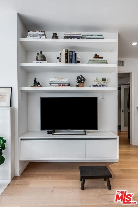 Welcome to elevated living in the heart of West Hollywood, one of Los Angeles' most vibrant and sought after neighborhoods, celebrated for its dynamic day to night energy, renowned dining, coffee culture, boutiques, and entertainment.This designer finished two bedroom, two bath residence offers a seamless blend of sophistication and comfort. Clean architectural lines, high end finishes, and thoughtfully curated materials, including Mirage white oak floors in the main living areas and Ann Sacks tile in the bathrooms, create a modern yet inviting aesthetic throughout. The open floor plan flows effortlessly from the dining area and living room to a private balcony overlooking lush, mature trees, an ideal setting for morning coffee or evening relaxation.Both bedrooms are designed as primary suites, offering privacy and flexibility, along with generous storage and abundant natural light. The beautifully appointed kitchen showcases White Macaubas quartzite countertops, satin lacquer cabinetry, and stainless steel appliances, opening seamlessly to the main living space and creating the perfect environment for entertaining. Washer and dryer hookups provide added everyday convenience.Located within the coveted Courtyards community, residents enjoy resort style amenities including beautifully landscaped grounds, a sparkling pool, spa, and fitness center. This rare unit shares no common walls and includes two side by side parking spaces and a private storage locker. HOA dues cover gas, water, basic cable, and the majority of the electricity.More than just a residence, this is a lifestyle that is stylish and perfectly positioned in West Hollywood.