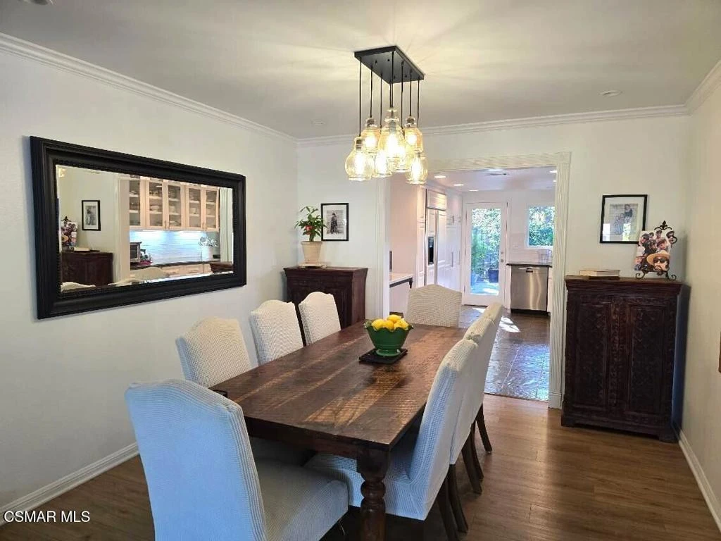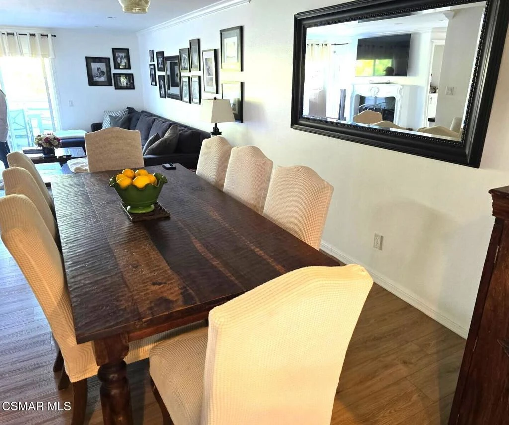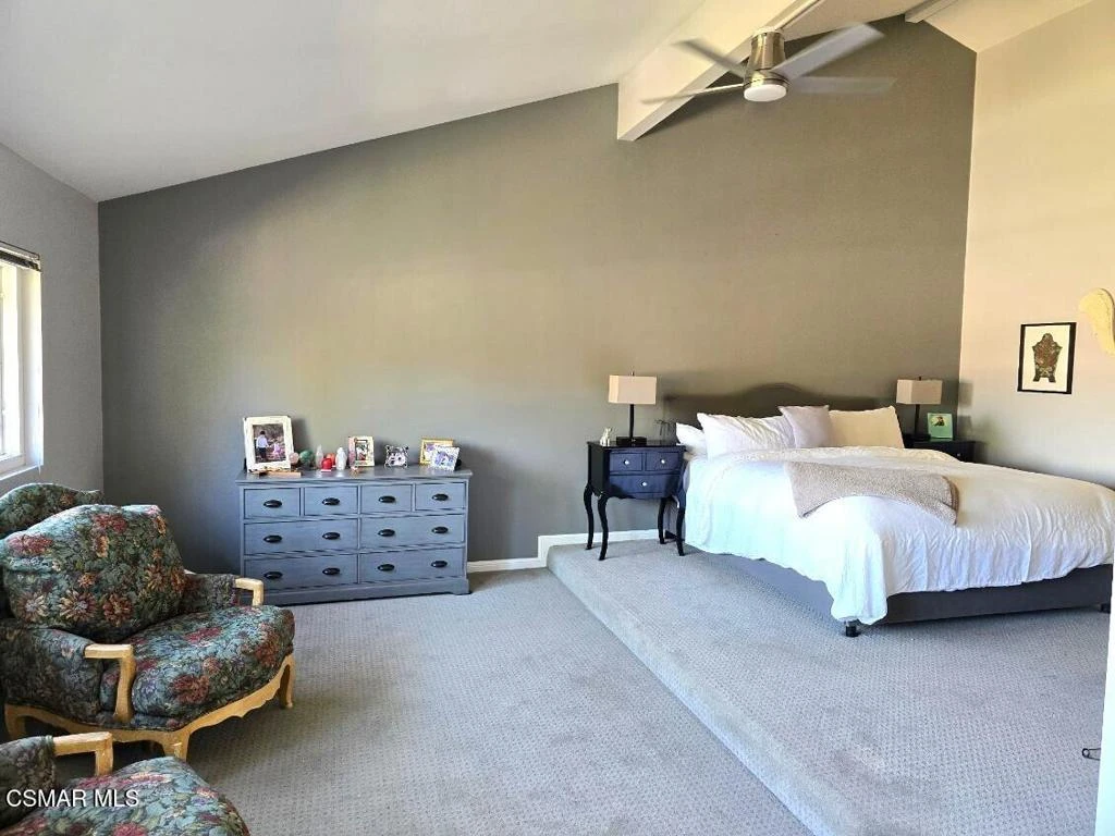 Welcome to this stunning, updated North Ranch townhome, ideally situated in a serene and highly desirable location. A beautifully landscaped front yard introduces an inviting double-door entry to the foyer, ideally situated with seamless access to the garage. Just up a short flight of stairs, you'll find a spacious bedroom or office retreat featuring sliding glass doors that open to a peaceful patio surrounded by mature trees--offering exceptional privacy and tranquility. An adjacent, tastefully remodeled bathroom makes this space perfect for guests or multi-generational living. The main living area showcases an open-concept floor plan designed for both comfort and entertaining. The expansive living room features a cozy fireplace, built-in wet bar and seamless access to a private balcony--ideal for hosting gatherings, enjoying sunset views, or savoring a quiet morning coffee. The adjoining dining area is generously sized and conveniently located next to the kitchen, making entertaining effortless. The remodeled chef's kitchen is both stylish and functional, complete with slate flooring, granite countertops, stainless steel appliances, soft-close cabinetry and a breakfast nook. A direct access door leads outdoors, creating a seamless indoor-outdoor living experience. The oversized primary suite is a true sanctuary, featuring a large sitting area with breathtaking views. The luxurious en-suite bathroom offers an large walk-in shower, soaking tub, dual vanities with marble countertops, and two separate walk-in closets with designer barn doors. Additional highlights include a light-filled loft, a spacious secondary bedroom, and another beautifully updated bathroom. Step outside to a peaceful, multi-level backyard designed for relaxation and entertaining, complete with lush greenery and added privacy. This exceptional home also includes upgraded windows, recessed lighting throughout, an attached two-car garage with built-in cabinetry and a dedicated laundry room. The community offers private roads, six spas, and beautifully maintained grounds, all just moments from North Ranch Country Club. With convenient access to shopping, dining, hiking trails, and major freeways, this home truly has it all.