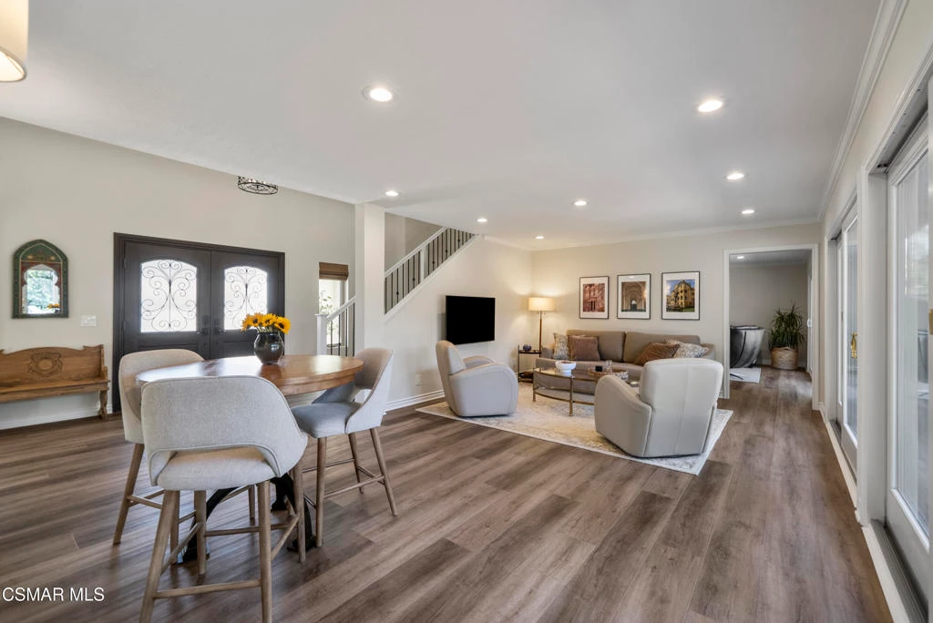 Welcome to Foxmoor! - known for its lush greenbelts, top-rated schools and unmatched quality of life. A short distance to Westlake Elementary, community pool and Portero Creek greenbelt, this beautifully maintained Mediterranean-style home is truly move-in ready. Offering 4 bedrooms plus a dedicated office, it blends comfort, style, and convenience in an ideal location.Step inside to find an abundance of natural light and an inviting, open feel throughout. Expansive double sliding doors frame views of the spacious backyard and create a seamless connection between indoor and outdoor spaces.The thoughtfully updated kitchen features a Bosch induction cooktop, GE Profile oven, stainless steel appliances, and a casual dining area that flows naturally into the main living spaces. An airy living room and inviting family room provide versatility for both entertaining and everyday living, while the no-step main level adds convenience and accessibility. A second set of sliding doors in the family room further enhances the home's indoor-outdoor lifestyle. Upstairs, the primary suite offers a generous walk-in closet and a well-appointed en-suite bathroom. The secondary bathroom features double vanities and a shower-over-tub, while a powder room serves the main level.Recent upgrades include a new roof (February 2026), updated windows, cellular shades, tankless water heater, epoxy-finished garage, new driveway and walkway, and a freshly painted interior and exterior - providing peace of mind and true move-in readiness.The backyard is framed by lush landscaping and offers a natural gas BBQ hookup, fire pit, and generous space to relax or entertain -- an ideal setting to enjoy the best of Westlake Village living.Conveniently located near top-rated schools, shopping, dining, and local amenities, this home presents an exceptional opportunity to own a thoughtfully updated property in a prime location!