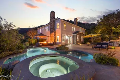 Set behind the gates of Majestic Oaks, one of Westlake Village's most exclusive enclaves, this elegant estate offers the privacy, scale, and lifestyle that define luxury living in the hills. Surrounded by natural beauty and positioned in one of the area's most sought after communities, the home blends timeless design with an exceptional indoor outdoor flow.The backyard delivers a true resort experience with a pool, spa, and stunning mountain views that create a sense of escape. A detached guest house adds valuable flexibility for visitors, a private studio, or poolside entertaining, while the private golf putting green offers a rare and desirable feature. With expansive outdoor space and a setting that feels both peaceful and impressive, this is a home designed to be enjoyed year round.Inside, the layout is both spacious and versatile, with expansive living areas, generously sized bedrooms, and a flexible office that can easily serve as an additional bedroom. The primary suite feels like a true retreat, complete with a spa inspired bath featuring dual vanities, a soaking tub, and a walk in shower designed for everyday comfort and relaxation.At the center of the home, the kitchen is beautifully designed with ample counter space and an inviting atmosphere that opens seamlessly to the main living areas, making it ideal for both everyday living and elevated entertaining.Located in the heart of Westlake Village, moments from upscale dining, shopping, scenic trails, and top rated local schools, this Majestic Oaks residence offers a rare opportunity to enjoy a gated estate lifestyle in one of the Conejo Valley's most desirable settings.
