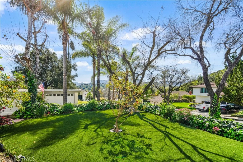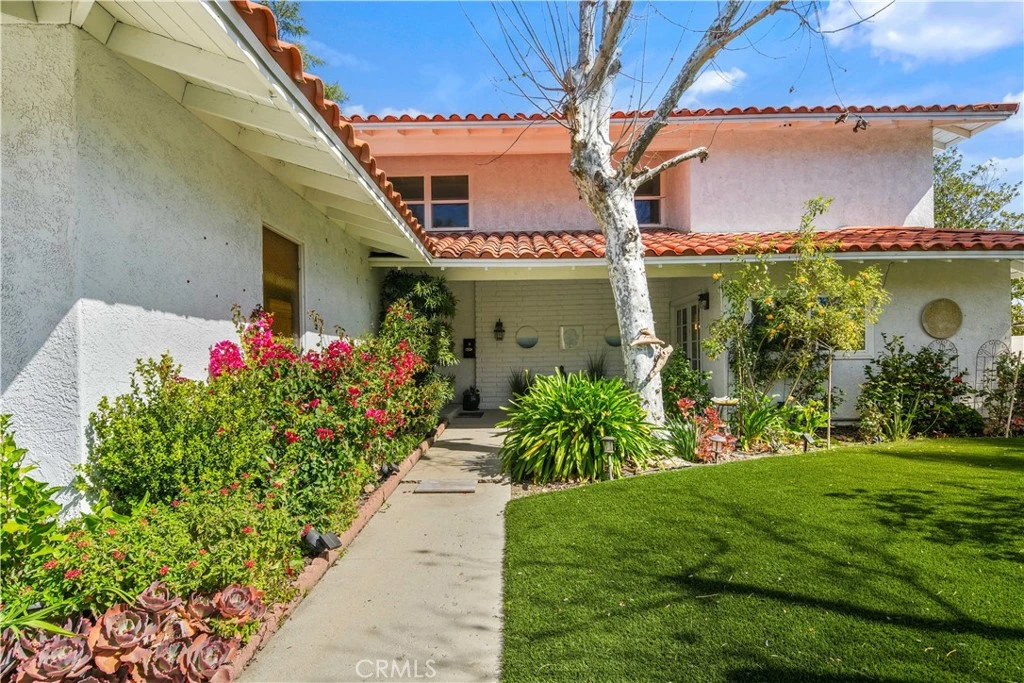 Welcome to this exceptional Foxmoor Hills beauty, offering one of the largest and most desirable floor plans in the neighborhood — perfectly situated in the heart of Westlake Village! An inviting curb appeal greets you with an updated front door and charming front porch.The front lawn has been thoughtfully upgraded with artificial turf, providing year-round greenery while conserving water and minimizing maintenance. Step inside to a bright and graceful living room featuring dramatic two-story ceilings and stunning floor-to-ceiling windows— ideal for entertaining. Electronic blinds downstairs and double-pane windows enhance comfort and efficiency throughout the home. The updated chef’s kitchen is appointed with granite countertops, a center island, breakfast area, and a custom-made French door separating the kitchen from the dining room for added elegance and privacy. The spacious family room offers built-in bookcases and a cozy fireplace — the perfect space to unwind. A convenient downstairs bedroom with office built-ins and exterior French doors, along with a full bath, provides flexibility for guests or a home office. Upstairs you’ll find four additional bedrooms and two bathrooms, including a generously sized primary suite. Engineered wood and slate flooring flow throughout the home, and custom built-ins in all bedroom closets maximize organization. Step outside to your private entertainer’s yard complete with a sparkling pool and mature fruit trees including orange, lemon, and peach — creating your own backyard orchard retreat. Additional highlights include a 3-car garage with extensive storage cabinetry and a thoughtfully designed layout that comfortably accommodates every lifestyle need. This Foxmoor Hills gem truly has it all — space, upgrades, location, and charm. Hurry, this one will not last!
