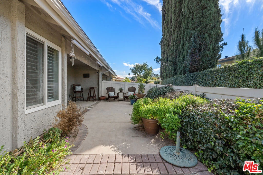 Single story Triunfo West condo with best location. This much sought after community offers 22 acres of beautifully landscaped grounds including walkways, 2 pools with spa and bathrooms. With a generous courtyard entry leading to gardens that wrap around and lead to a rear patio, facing a greenbelt. This 2 bedroom floor plan offers privacy and loads of natural lights. The primary suite offers views of the rear patio, 2nd bedroom has views of entry courtyard. Living and Dining rooms are spacious and share a center fireplace. 2 car private garage has direct entry to the courtyard. Upgraded windows and sliding doors. This is a well managed community with friendly neighbors. Close to the lake, parks, shopping & dining.