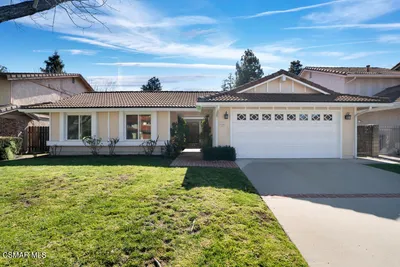 Single story Westlake Village home on a nearly 1/3 acre private corner lot. Exceptional outdoor rear yard. The backyard is truly a standout, featuring an outdoor living area with a built-in BBQ, pizza oven, sink, fireplace, and wired for a TV. Meticulously landscaped grounds with new hardscape throughout the exterior to create a setting rarely found in this price range. Fire feature added to the pool and spa. Other upgrades are a recently replaced roof with new Spanish tile, newer windows, brand new wood flooring throughout, shutters, a remodeled primary bath. Custom lighting is found throughout, along with in-wall speakers for TV and music both indoors and out. Added skylights bring in even more natural light.