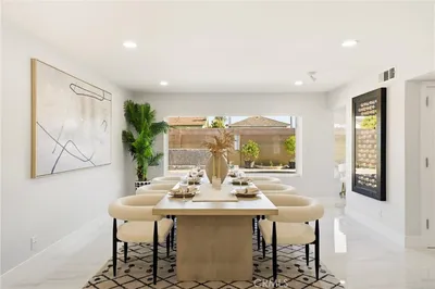 Don’t miss this beautifully upgraded contemporary home offering nearly 2,800 sq ft of living space near Mile Square Park, Little Saigon, and premier shopping and dining. This spacious 4-bedroom, 4.5-bath single-family residence has been extensively renovated with major improvements including new plumbing, updated electrical, a new A/C system, newer roof, upgraded windows and electric blinds. Step through the formal entry with elegant marble flooring into a bright and inviting living and dining area featuring large windows that overlook the backyard and pool, creating a perfect space for entertaining. The spacious kitchen features elegant white stone countertops, a built-in cooktop, and double ovens, ideal for anyone who appreciates a gourmet kitchen. An office nook is conveniently located near the family room, which includes a beautiful marble fireplace. Upstairs, highlighted by a glass and chrome banister staircase, you’ll find generously sized bedrooms with full baths. The bright primary suite features a walk-in organized closet and an adjoining bathroom with a walk-in shower and dual vanity. Secondary bedrooms share a Jack-and-Jill bathroom, while another bedroom includes a private retreat perfect for a playroom, office, or hobby area. The interior showcases marble flooring throughout and recessed lighting with dimmer controls, creating a bright and elegant living environment. Step outside to enjoy the refurbished swimming pool, perfect for entertaining and relaxing. The covered patio features recessed lighting and is surrounded by lush landscaping. Additional highlights include split-zone air conditioning systems, a tankless water heater, and solar panels, enhancing the home's energy efficiency. The 3 cars garage currently being used as another entertainment area with built in cabinetry and counter tops.