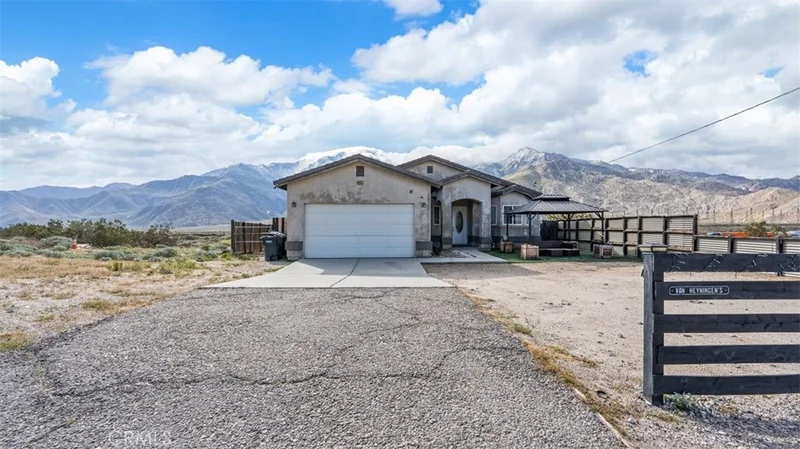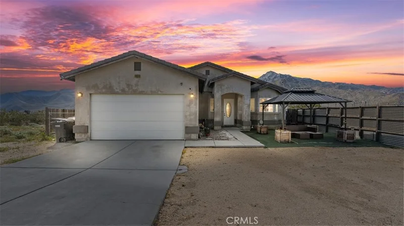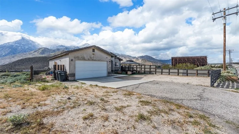 Breathtaking Mountain Views & Modern Elegance Await! Experience panoramic vistas of the San Bernardino and San Jacinto mountains from this stunning 3-bedroom, 2-bath single-story home. Situated minutes from Palm Springs, Morongo Casino, and Cabazon Outlets, this 2006 gem offers convenience and sophistication. Step through the 8-foot front door to discover soaring ceilings and a bright, open-concept living space with sleek tiled flooring and recessed lighting. The modern kitchen features stainless steel appliances, flowing seamlessly into a living area highlighted by huge French doors. The spacious primary suite is a true retreat, offering laminate flooring and private backyard access. Featuring upgraded 8-foot doors throughout, this home offers style and seamless indoor-outdoor living.