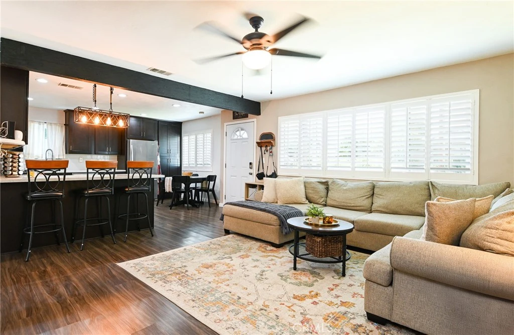 Welcome to 14322 Tedford Drive in Whittier, a thoughtfully upgraded home that blends comfort, functionality, and modern improvements throughout. Since 2020, the property has seen significant upgrades including copper plumbing, dual-pane windows, a new roof, a heat pump HVAC system, and refreshed exterior paint with stucco repairs, offering peace of mind and long-term value. From the moment you arrive, you’ll notice the paved driveway, well-maintained grassy front yard, and attractive stone accents that enhance the home’s curb appeal. Inside, the home features an open-concept layout where the living room flows seamlessly into the kitchen, creating an inviting space for both everyday living and entertaining. The kitchen is designed with both style and function in mind, showcasing quartz countertops, stainless steel appliances, dark cabinetry, recessed lighting, and two dining options including bar seating and a dedicated dining area by the window. Vinyl flooring runs throughout the home, complemented by ceiling fans for added comfort. One of the bedrooms features large sliding glass doors that provide direct access to the backyard, creating a bright and airy retreat. The additional two bedrooms are well-sized and include mirrored sliding closet doors, enhancing both storage and natural light. Both bathrooms have been updated with modern tile work and refreshed tubs, offering clean and functional spaces. The home also offers direct access to the garage from the interior, adding everyday convenience and functionality. Step outside to a spacious backyard designed for both entertaining and play, complete with upgraded pavers throughout. An additional fenced area provides flexibility for pets, storage, or gardening, making the space both versatile and low maintenance. This home presents a great opportunity to own a move-in ready property in a desirable Whittier location with meaningful upgrades already completed.