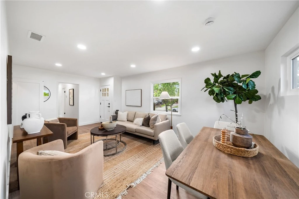 This Stunning home blends elegance and comfort, featuring impressive curb appeal, and a beautifully upgraded interior, and a resort-style backyard. This Thoughtfully designed floorplan offers a seamless flow between the Living Room, and Dining Room area, and the spacious and charming Family Room. The Entertainers Kitchen is the heart of the home, showcasing abundant cabinetry, and countertops and backsplash which is a gorgeous Calacatta Miraggio Duo Matte Q Premium Quartz. The home offers stainless steel appliances, and a Signature hardware Farm Sink with new Delta Faucets and Fixtures. There is a new Stackable Washer and Dryer combo which is included with the home. The Bathrooms have custom Bedrosians tile, the Taj Mahal Quartzite, which are gorgeous. There are new toilets, custom glass shower doors and new Delta Faucet and fixtures, new vanities and Designer lights and mirrors. Additional amenities are: A Beautiful Front Door and New Front Porch Tile, and a new Side Exterior Door, recessed lighting, New HVAC with Nest Controls, Ring Doorbell, New Windows and Doors, New Interior and Exterior Paint. New Laminate flooring and new baseboards throughout. Also, interior has new closet Doors with hangers and shelves. Step outside to a resort-style backyard featuring new exterior Hardscape in the rear yard and a new Patio Cover. There is a new Hook up for the Electric Vehicle in the garage & New Drywall and Epoxy coated Floor, new garage door and opener.