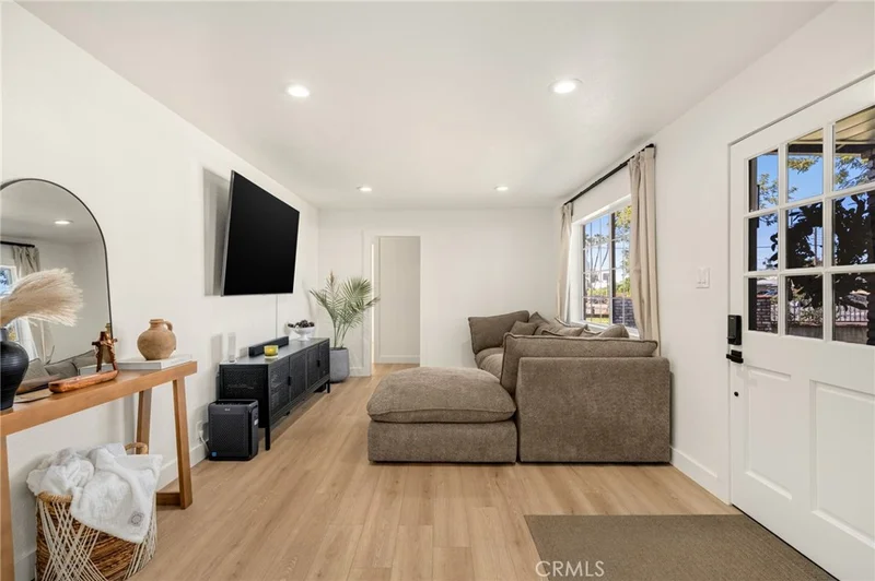 Welcome to this beautifully upgraded 3-bedroom, 2-bathroom home offering nearly 1,700 sqft of thoughtfully designed living space on a 6,316 sqft lot in the heart of Whittier. From the moment you arrive, you’ll appreciate the inviting curb appeal with newly laid grass, a mature avocado tree, and a private fenced driveway. Inside, the home features new flooring, recessed lighting, abundant natural light, and a spacious dining area. The stunning kitchen showcases a unique peninsula with a waterfall countertop that provides seating and extra storage, floating shelves, a built-in range hood, and ample cabinetry. The spacious primary suite offers dual closets and a beautifully designed en-suite bathroom featuring a floating vanity, floor-to-ceiling tile, a stand-up shower, and a relaxing standalone tub with a subtle Spanish-inspired touch. All bedrooms are generously sized with excellent storage, new ceiling fans, and mini-split systems to keep the home cool year-round. A versatile bonus room adds flexibility for a home office, playroom, or additional living space. Step outside to enjoy a covered patio perfect for outdoor dining, a newly poured concrete pathway, mature fruit trees, and a gas line ready for a future fire pit. The detached two-car garage provides excellent storage and functionality. Tastefully upgraded throughout, this home truly has everything you need for comfortable and stylish living.