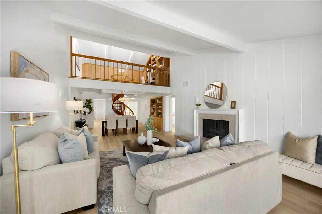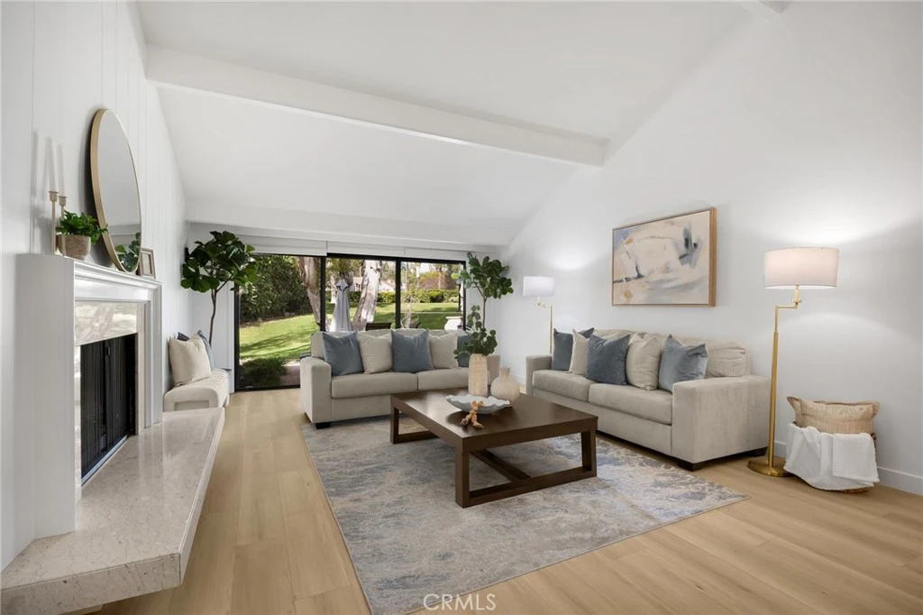The gated community of Friendly Woods is a much sought after enclave of only 36 homes in Whittier - an oasis with manicured greenery, a swimming pool, spa and tennis court, yet convenient to civilization. This home in particular has been freshly renovated to please the most discerning home buyer. The "beachy" floors and warm white walls give this home an expansive, inviting vibe. The large galley kitchen has new flat front cabinet doors and drawer fronts (easy to clean), quartz counters, stainless 5 burner cook top, double oven and stainless fridge and dishwasher. The dining nook has glass doors overlooking your private courtyard, a small secretary's desk and washer/dryer tucked into a closet. The great room is perfect for entertaining. Imagine gathering for a meal with your loved ones, the ambience of the fireplace, the expansive sliding doors that open onto your patio and the green belt beyond. From the great room you can climb the spiral staircase up to the loft which makes a terrific home office - it's private without feeling "locked away" while you work. While you're up there, be sure to look for the secret doors in the paneling that conceal book shelves and a filing cabinet. Both bedrooms are quite large. The spa-like primary en-suite bath has a gorgeous walk-in shower with custom tile work, a vessel soaking tub with floor mounted fixtures, double sinks and lots of storage. The primary bedroom has a walk in closet + a second smaller closet, a built-in vanity and a gas fireplace - you'll never want to leave. Even the secondary bedroom is large with original floor to ceiling windows overlooking your private front court yard. Home has an attached, oversized two-car garage with a utility area and ample guest parking available.