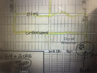 Deal of the day 54.93 acre +/- . APN 361-030-001 44.93 acre and 361-030-003 10 acre. Perfect to buy and hold ( investment ) and or add a new home or Manufactured or Modular , on each lot , Wait for a future tract builder to come knocking down the road . City of wildomar , buyer to verify current and future general plan maps or CUP and change use . Comes out to 9,000 +/- an acre septic and well area at the moment . Lot loans available 15% or more down. Land is near 24380 Cotton wood @ spruce to orange. Park car(s) at spruce and orange - walk to lot