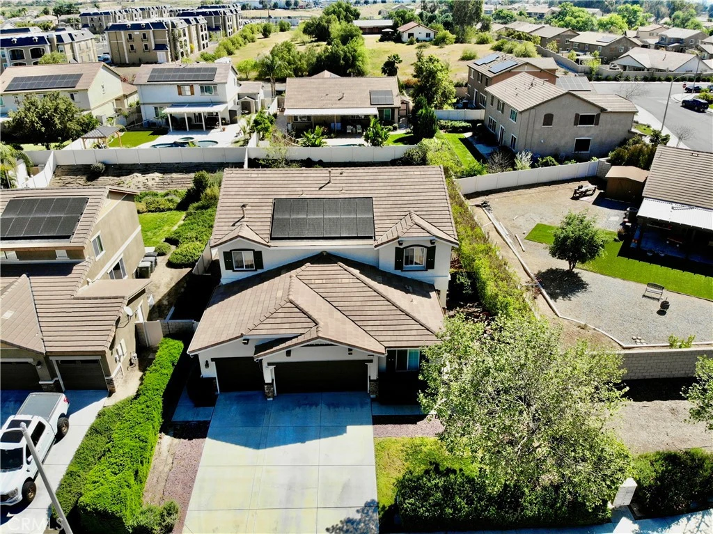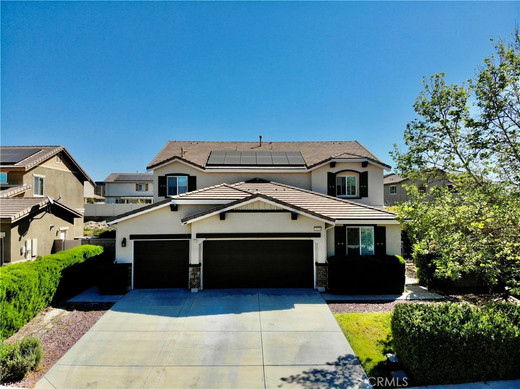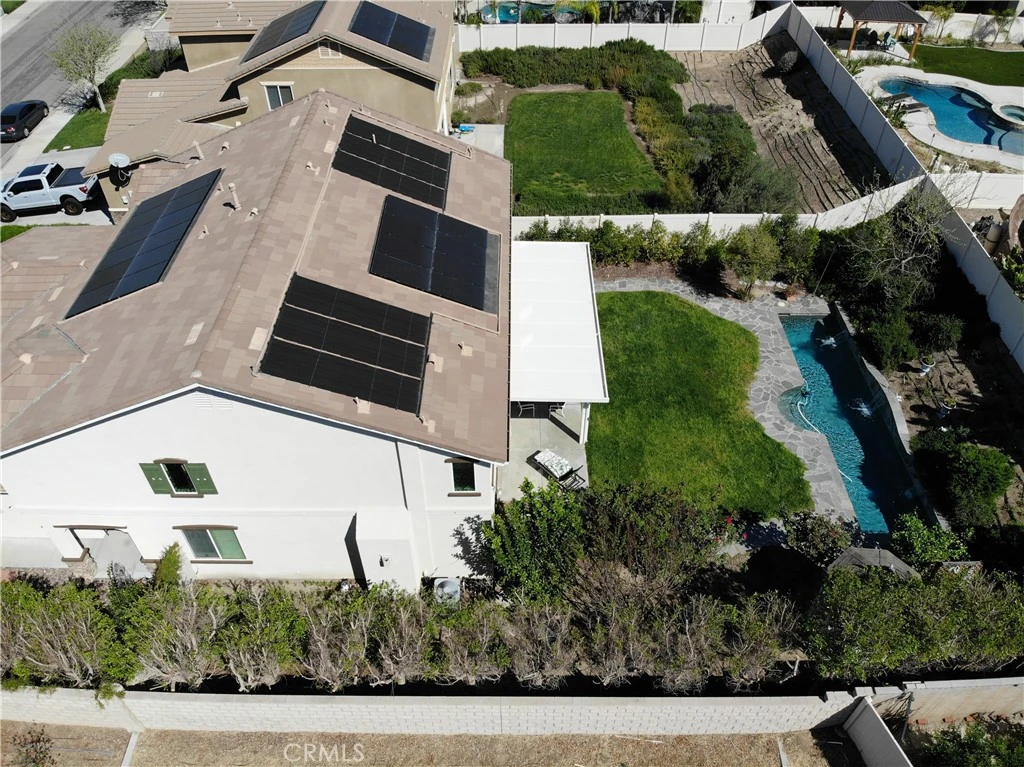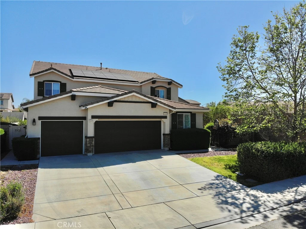 Spacious and highly upgraded home in Wildomar offering over 3,600 square feet of living space, a private apartment, and a backyard designed for Southern California living. Built in 2012, this property combines functionality, comfort, and versatility.The main home features 4 bedrooms, 3.5 bathrooms, and a large loft, along with abundant storage throughout. Exterior updates include fresh Behr paint. Custom wood shutters, and architectural details such as softened arches. The open-concept kitchen is designed for everyday living and entertaining, featuring a large center island, built-in refrigerator, stainless steel appliances, 5-burner Wolf range, walk-in pantry, and pull-out cabinetry.The primary suite includes a custom-designed bathroom with a spacious walk-in shower featuring sauna-inspired design elements and low-maintenance rain glass.An attached 1 bedroom, 1 bathroom private apartment provides flexible use options and includes its own private courtyard and stackable washer and dryer.Situated on a 9,148 square foot lot, the backyard includes a flagstone lap pool with fountains, oversized Alumawood patio cover, and a custom hardwood gazebo. Additional outdoor features include a private courtyard with Spanish pavers.Energy-efficient upgrades include solar (lease) for both the home and pool, along with a tankless water heater. Additional features include a tile roof, mountain views from the second floor, and a low HOA. Located near parks, shopping, dining, and convenient commuter access, this property offers a well-rounded combination of space, upgrades, and flexible living. 8 minutes to Starbucks, 3 minutes to Stater Bro's, 5 minutes to David A Brown middle school, 3 minutes to Donald Graham grade school, 3 minutes to a favorite Italian restaurant. And for the commuters, 4 minutes to the 15 freeway.