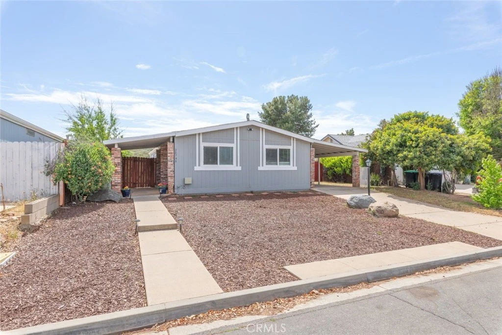 Welcome to “THE FARM” in Wildomar—where low taxes, low HOA, and an amenity-rich lifestyle come together in one of the area’s most desirable communities! This charming manufactured home on a permanent foundation offers 2 bedrooms, 2 bathrooms, and a bright, open floor plan designed for comfortable everyday living and effortless entertaining. Step inside to a spacious great room that flows seamlessly into the dining area, creating a warm and inviting space filled with natural light. The large cook’s kitchen is the heart of the home, featuring large countertops, a decorative backsplash, a window over the sink, an oversized breakfast bar, and abundant cabinetry for all your storage needs. The generously sized primary suite offers a relaxing retreat with its own private bathroom, while the secondary bedroom is well-proportioned and conveniently located near the full hallway bath. Additional highlights include a separate laundry room and dual pane windows for energy efficiency. Outside, enjoy a longer driveway with two covered carport spaces that offer flexibility and potential for additional uses. The expansive backyard is truly a standout feature—boasting a large covered patio, pool-sized lot, firepit, and a spacious storage shed. With plenty of room to entertain, relax, or customize, you’ll love taking in the beautiful mountain views and serene surroundings. Living in The Farm means access to incredible community amenities including 3 swimming pools, a fishing pond, 2 parks, baseball field, dog park, tennis and basketball courts, community garden, RV parking, citrus groves, and miles of hiking and biking trails for outdoor enthusiasts. Conveniently located near the 15 and 215 freeways, this home offers easy access for commuters, along with nearby shopping, dining, casinos, and Temecula wine country. A rare opportunity to own in a vibrant community with so much to offer! Book your showing today!