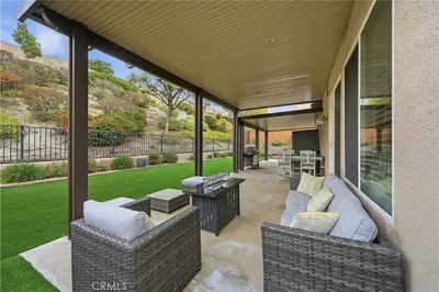 Beautifully updated home with solar located in the highly desirable Smith Ranch community of Wildomar— bordering Murrieta with easy access to freeways, shopping, schools, parks, and trendy dining! This turnkey residence offers nearly 3,000 sq ft of well-designed living space featuring 4 bedrooms and 3 full bathrooms, including a highly desirable MAIN LEVEL BEDROOM AND FULL BATH—perfect for guests, multigenerational living. Inside, you’re welcomed by a large mudroom with built-in storage and OPTIONAL 5th BEDROOM, currently being used as an office accented by elegant French doors. The renovated kitchen is a true showstopper, showcasing soft-close cabinetry and drawers, stainless steel appliances, granite countertops, and a designer backsplash. Seamlessly connected living spaces include a formal dining room, dining nook, and a spacious family room highlighted by a custom gas fireplace—ideal for both everyday living and entertaining. Tasteful upgrades throughout the home include custom interior paint, luxury vinyl plank flooring in the main living areas and bathrooms, and plush carpeting in all bedrooms. Upstairs, the primary suite features dual oversized closets, a cozy gas fireplace, and a beautifully updated en-suite bath with dual vanities and a custom walk-in shower. Additional highlights include an upgraded secondary bathroom and an upstairs laundry room complete with washer and dryer. Solar system that adds energy efficiency and long-term savings, completing this exceptional home that truly checks all the boxes. Welcome Home!
