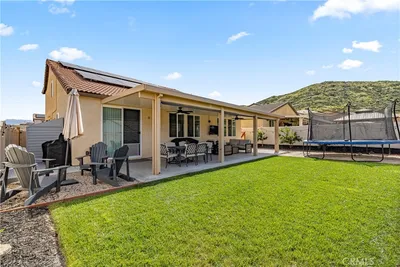 Welcome to 29567 Cherokee Trail a beautifully upgraded home that blends modern comfort, functionality, and outdoor living at its finest. From the moment you arrive, you’ll notice the enhanced curb appeal featuring professional landscaping, hardwired landscape lighting, an extended driveway and walkway, and upgraded Sherwin Williams paint throughout. Step inside to find a thoughtfully designed interior with upgraded modern door handles, a stylish barn door in the primary suite, and ceiling fans installed in both the living room and primary bedroom for added comfort. The kitchen has been tastefully improved with an upgraded sink and faucet, perfect for both everyday living and entertaining. Step outside into your private backyard retreat designed for both relaxation and entertaining. Enjoy a covered patio complete with two ceiling fans, lighting, privacy shades, and a dedicated outlet ready for your outdoor TV. The space is elevated with a concrete slab extension connecting the patio to the extended driveway, hardwired string lights for warm ambiance, additional electrical outlets, and a fully installed drip system for easy plant maintenance. The backyard also features sod, sprinklers, three citrus trees, and a dedicated dog run. Additional highlights include: • Hardwired security camera system with mobile and local controls • Added attic crawl space storage • Blinds throughout the home This home truly offers the perfect combination of thoughtful upgrades, energy efficiency, and indoor-outdoor California living. Don’t miss your opportunity to own this turn-key property in a desirable location.