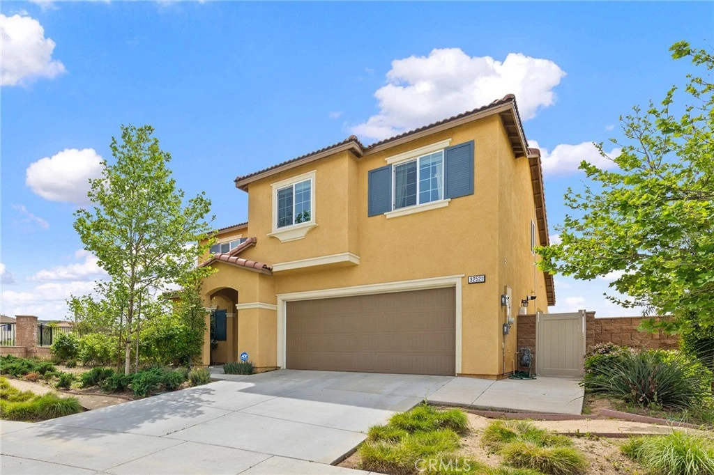 Super unique lot with only one adjoining neighbor, offering added privacy. This spacious 5-bedroom home features a highly desirable layout with both the primary suite and a secondary bedroom conveniently located on the first floor. As you enter, you’re welcomed by a wide, inviting hallway that sets the tone for the home’s open feel. The main living area feels bright and spacious with soaring vaulted ceilings. The cozy family room opens to the beautifully appointed kitchen, featuring quartz countertops, gorgeous white cabinetry, upgraded appliances, a charming coffee bar area, large center island, and an oversized dining area. Downstairs includes a spacious secondary bedroom, full bathroom, and a generous primary suite with dual sinks, step-in shower, vanity area, and a large walk-in closet. A convenient downstairs laundry room adds to the home’s functional layout. Upstairs, you’ll find a huge loft with a custom built-in desk area that can easily be removed if desired, along with three additional well-sized bedrooms and a full bathroom with tub/shower combo and dual sinks. The backyard is a true entertainer’s delight with a large Alumawood patio cover the runs the entire length of the back of the home, custom concrete patio, expansive turf area, concrete fencing for added privacy and low maintenance, plus vinyl fencing on one side. Energy efficiency is a standout feature with two solar systems—one fully paid off and the other with an affordable lease—helping to significantly reduce utility costs. Garage has been wired with 220 outlet for your potential car charging station. Located in a great neighborhood with fun community organized events at the community park nearby. This home offers space, flexibility, and privacy in a wonderful setting.