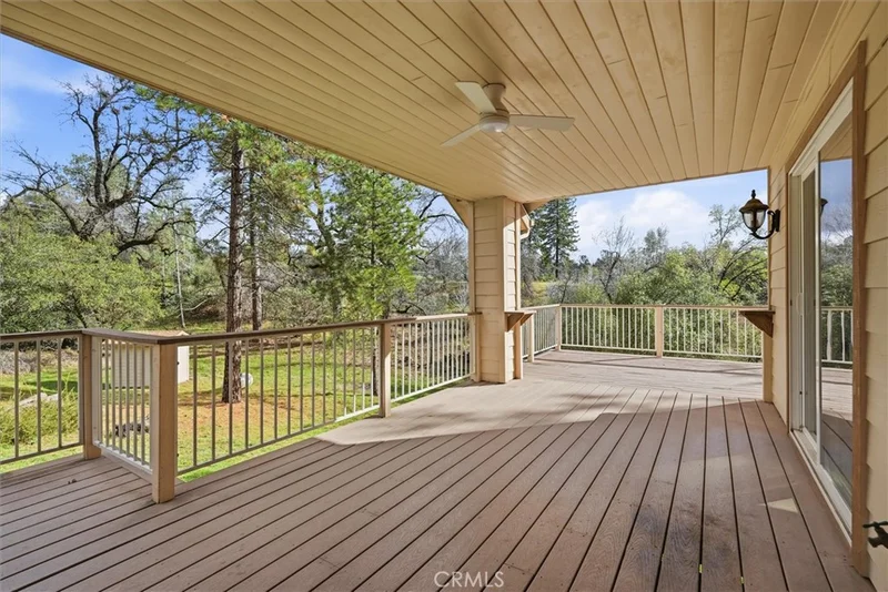 Set on 3.71 scenic acres with a seasonal creek and expansive outdoor living spaces, this custom-built Wishon home offers the perfect blend of comfort, privacy, and mountain lifestyle. The spacious 2,158 sq ft floor plan features an open, airy design highlighted by a beautifully remodeled kitchen with a propane range, large island, breakfast bar, and breakfast nook, all flowing effortlessly into the living area and formal dining space, ideal for gatherings or relaxed everyday living. A private entrance/mudroom and separate laundry room add both function and convenience. The thoughtfully isolated primary suite provides a peaceful retreat with sliding door access to the deck, a generous bathroom featuring a soaking tub, separate shower, dual sinks, and a walk-in closet. Fresh interior paint and newer laminate wood flooring enhance the bright, inviting feel throughout the main living areas and bedrooms. Outdoor living truly shines here with expansive, partially covered Trex decking that wraps around the home and extends to a back patio overlooking the seasonal creek and surrounding natural beauty. The property offers abundant parking, including an extra-deep finished 3 car garage. Ideally located just minutes from Miller’s Landing, the Bass Lake Dam and launch ramp, this home provides easy access to lake life, outdoor adventure, and nearby Yosemite, an exceptional mountain retreat in every sense.