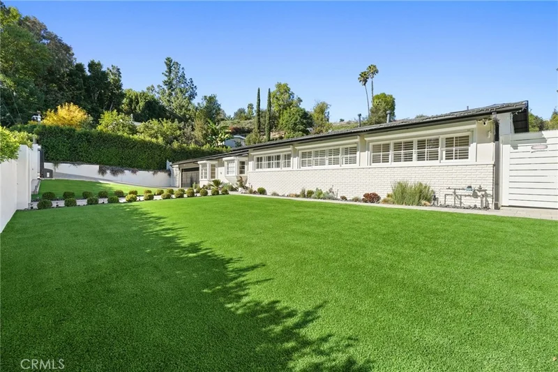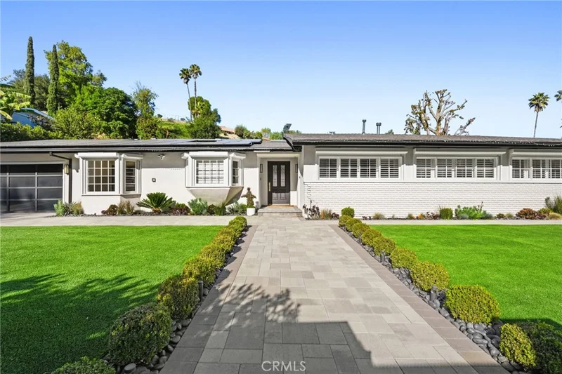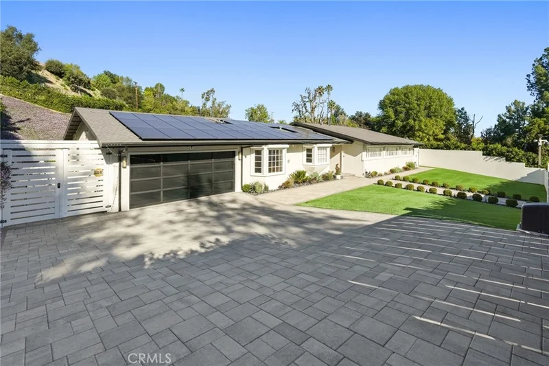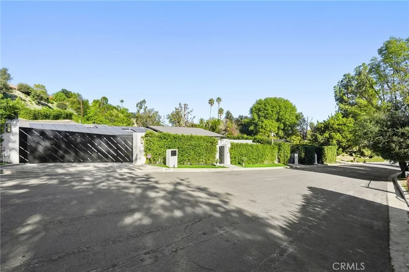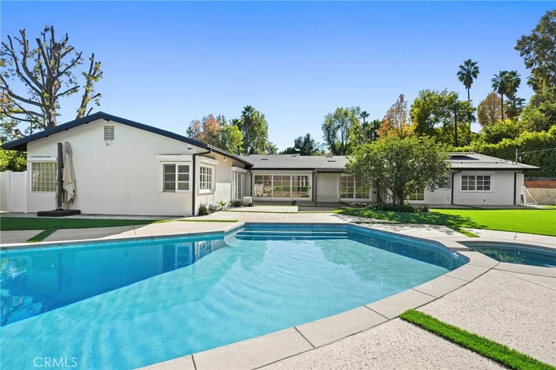 Situated South of the Boulevard in Woodland Hills, this exceptional gated, single-story, remodeled estate offers luxury, privacy, and smart-home living on an expansive 25,000 sq ft lot with a large, private front yard. Spanning approximately 3,700 sq ft, the home features 3 bedrooms PLUS an office and 4 bathrooms with an ideal floor plan. The residence is truly turn-key with extensive recent upgrades including a new roof, new HVAC, new flooring, fresh interior and exterior paint, updated electrical panel, and new lighting throughout. The home offers an open-concept living room and dining room, as well as a large family room, all featuring sliding glass doors that open directly to the expansive, park-like backyard, creating seamless indoor-outdoor living. The home also offers abundant storage throughout, adding to its exceptional functionality. The oversized primary suite includes two large walk-in closets with steel doors and a luxurious en-suite bath. The spacious kitchen features abundant cabinetry, generous counter space, and a breakfast nook. Outdoor amenities include a brand-new pool and heated spa, controllable via phone app, along with a sandy play area ideal for recreation. Both the front and rear yards feature turf for water conservation. Additional highlights include full perimeter walls and fencing, mature Ficus hedging, high-end security cameras, alarm system, blackout security shutters, smart gates and garage, 40 solar panels with Tesla backup battery, and two 240V EV chargers. A rare lease opportunity in one of Woodland Hills’ most desirable neighborhoods.