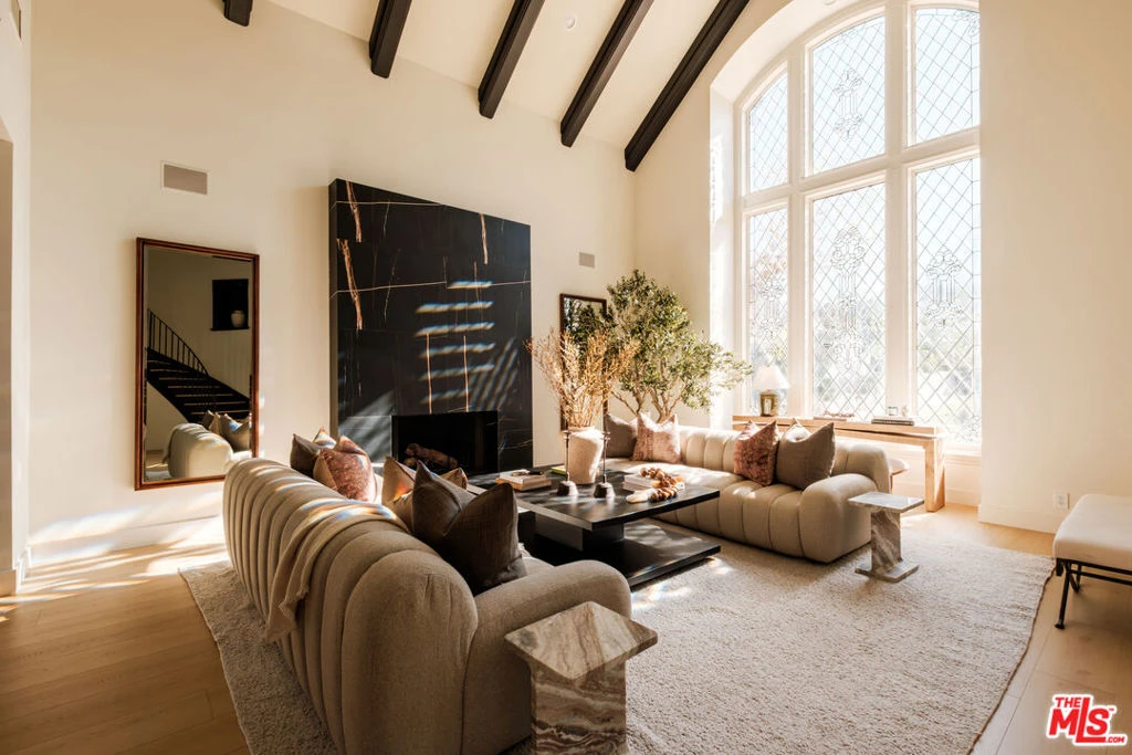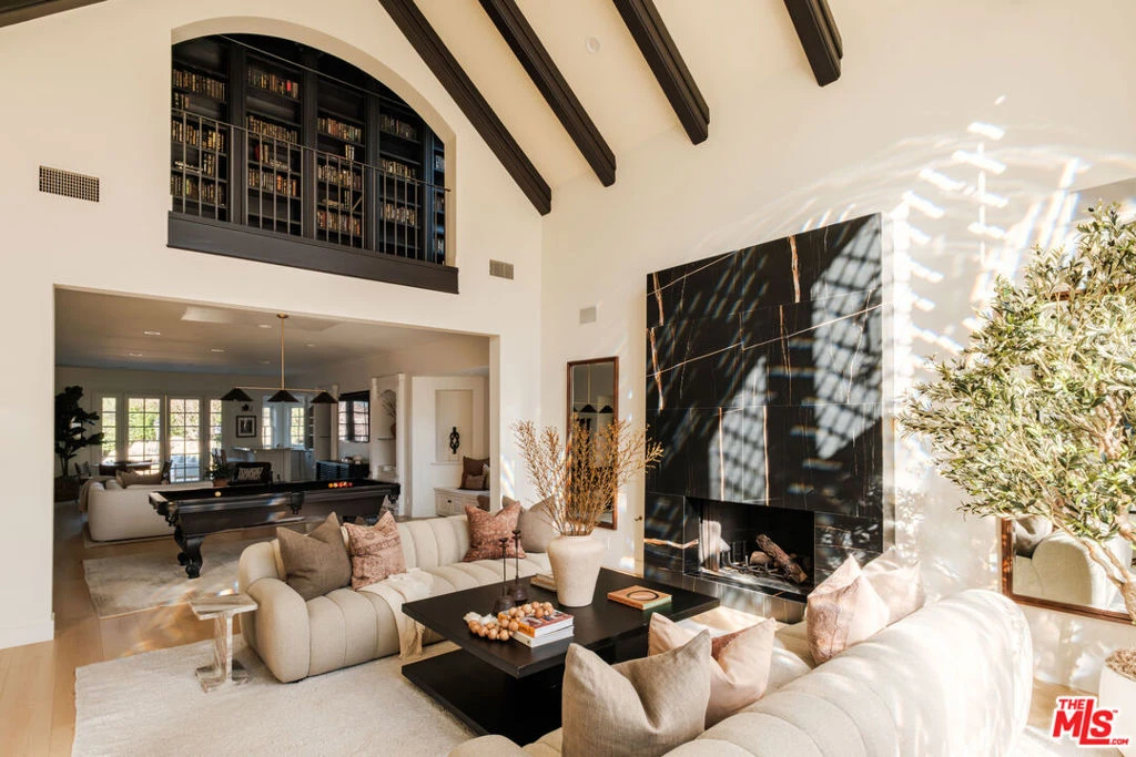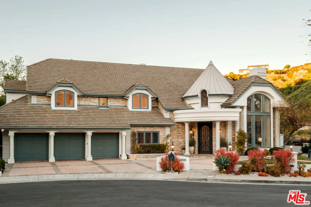 If a fairytale were reimagined for modern luxury living, it would be 20315 Howard Court. Ideally situated South of the Blvd in Woodland Hills, this grand European-inspired estate spans nearly 7,000 square feet on over half an acre of manicured grounds, surrounded by lush, serene mountain views, and tucked within a private cul-de-sac. Timeless architecture meets refined updates, creating a residence that is both elegant and highly functional. Step through the doors and you are greeted by soaring cathedral ceilings and a sweeping staircase that immediately sets the tone: elegant, warm, and unforgettable. Sunlight pours through leaded glass windows, dancing across beam ceilings in the formal living room, where a glowing fireplace invites slow mornings and intimate evenings alike. The oversized family room, complete with a refined wet bar and custom built ins opens effortlessly to the outdoors a seamless transition for entertaining. The formal dining room exudes timeless elegance, creating a refined backdrop for both intimate dinners and memorable celebrations. Framed by custom French doors, the space opens effortlessly to the backyard, where beautiful, scenic views become part of the dining experience. The luxurious primary suite is a statement of comfort, crowned by elegant coved ceilings that enhance the room's airy sophistication. Custom dual walk-in closets feel like your own private boutique beautifully designed to showcase and effortless organization. The spa-inspired primary bath elevates the experience with premium finishes and a serene ambiance, designed for ultimate relaxation and renewal. Framed by picturesque views, this suite blends grandeur, comfort, and natural beauty into one extraordinary sanctuary. Beyond the primary retreat, the estate features 5 additional bedrooms and 5.5 bathrooms, including 4 upstairs en suite bedrooms thoughtfully positioned to capture gorgeous views and an abundance of natural light. Each space feels bright, tranquil, and inviting designed to offer both comfort and quiet sophistication for loved ones and guests alike. Outside the estate transforms into a resort-caliber sanctuary. A striking rock formation pool and spa with cascading waterfall is set against a backdrop of tranquil mountain vistas, while the sunken regulation-lit tennis court and expansive entertainer's patio with built-in granite BBQ create an exceptional environment for recreation and gatherings. Additional highlights include a private office/library, maid's quarters, dedicated laundry room, direct access to a three-car garage, and an attached guest house complete with a bedroom and bath below and a yoga or fitness studio aboveideal for extended stays or flexible living. Rarely does a property offer this level of scale, privacy, and natural beauty. 20315 Howard Court is a timeless estate designed for those who value refined living, privacy, effortless entertaining, and the serenity of a mountain-framed setting.