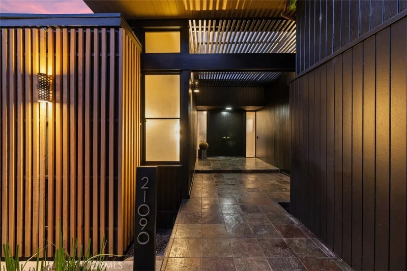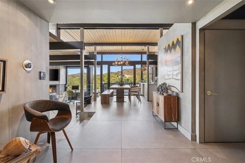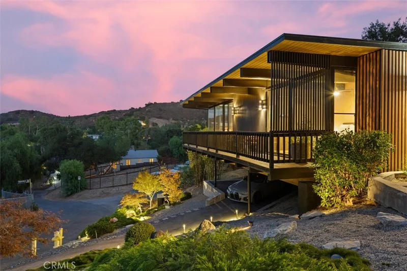 A Rare Mid-Century Modern Gem with Iconic Design and Panoramic Views Mid-century modern homes of this caliber rarely come to market. Designed by architect Dale Bergerson under legendary A. Quincy Jones. built in 1965 for the Zimmerman family, this architectural treasure embodies the clean lines, open spaces, and indoor-outdoor flow that define the era. Perched on a knoll above the 15th green of the Woodland Hills Country Club, the home captures sweeping mountain and golf course views through walls of glass and clerestory windows. Natural light floods the interior, highlighting Venetian plaster walls and distinctive tile and white oak flooring. Post and Beam construction creates a timeless, airy ambiance. The living space is centered around a dramatic gas fireplace and seamlessly connects to both front and rear outdoor areas. A Teak wood entertainer’s deck spans the back of the home, featuring a Viking outdoor kitchen, built-in spa, and tranquil custom waterfall, all framed by a towering wall of timber bamboo for added privacy. The chef’s kitchen is fully outfitted with premium appliances, including a Wolf range, Sub-Zero glass refrigerator, Miele built-in coffee station, and a temperature-controlled wine cooler. Three spacious bedrooms and two bathrooms are intelligently placed along a wide, open floor plan. The primary suite opens directly to the front deck, offering morning sunlight and evening serenity. The landscaping is a masterclass in balance and simplicity, inspired by traditional Japanese garden design. Additionally, a newly remodeled bonus room below the main residence offers flexible use—currently serving as a home theatre and art studio. Thoughtfully designed and impeccably maintained, this home is a rare opportunity to own a piece of architectural history with all the luxuries of modern living.