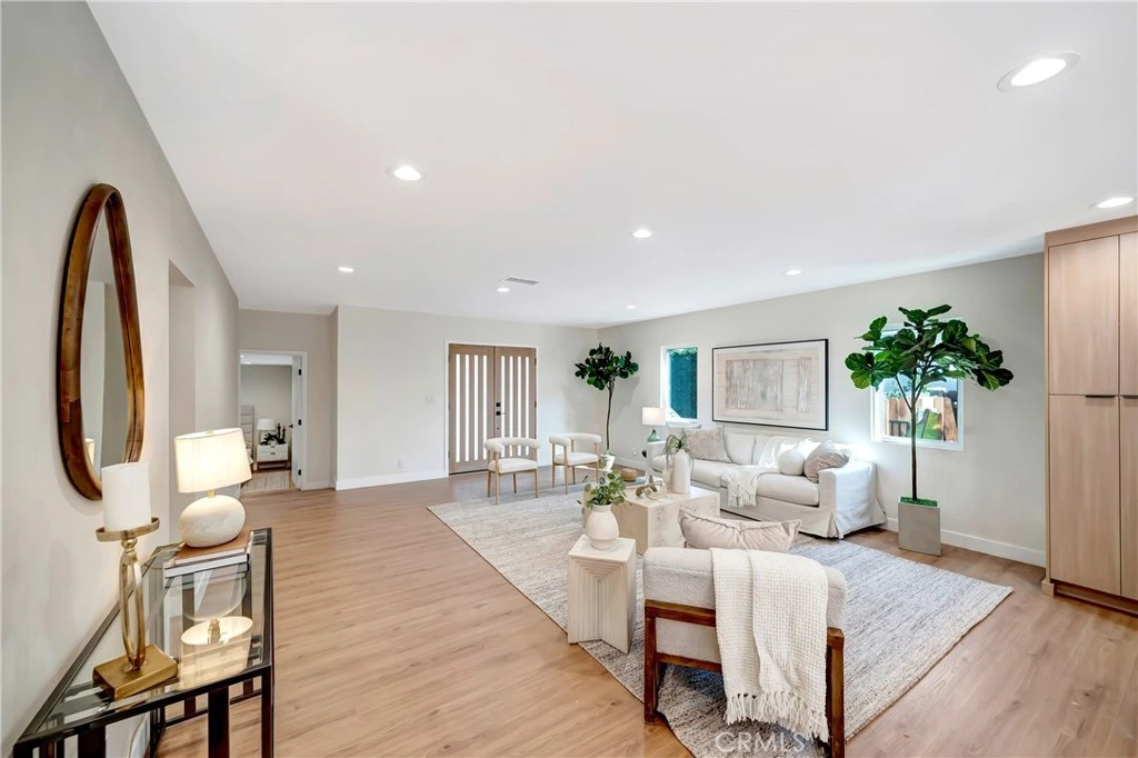 Expanded & Remodeled to Perfection! This impeccably redesigned, fully permitted single-story home, located south of the Boulevard in prime Woodland Hills, offers the perfect blend of luxury, style, and functionality. Situated on a lush, private lot in a coveted neighborhood with award-winning schools, the property has undergone a complete transformation, including a 1,000 sq ft expansion, now offering over 2,000 sq ft of thoughtfully designed living space. The open-concept layout flows seamlessly from the expansive family room to the dining area and into the custom designer kitchen that features custom cabinetry, quartz countertops, a large center island, and premium stainless-steel appliances, including a 36” gas range and built-in side-by-side refrigerator with water filtration. The primary suite is a true retreat with a spa-inspired bathroom that includes dual vanities and an oversized walk-in shower. Two additional designer bathrooms with stone finishes and unique details. Venetian plaster accent walls in the living room and powder room for a luxurious touch. Fully reconfigured layout with three engineered beams for structural support. New drywall, full insulation, and a complete upgrade of electrical, plumbing, and HVAC systems, all Title 24 compliant. Backyard & Additional Features: Large private backyard featuring a new in-ground swimming pool with state-of-the-art equipment, a spacious wood deck and patio, and ample room for relaxing or entertaining. New cement walkways and synthetic grass for a lush, low-maintenance yard, along with a storm drainage system designed to route water to the exterior street. New bedroom addition at the rear of the home with direct access to the backyard. Fresh front yard landscaping with new lawn, plants, and sprinkler system, plus a new front porch addition with stylish curb appeal. Additional Upgrades: New 30-year composition shingle roof professionally installed. Smooth stucco finish with new double-pane energy-efficient windows and doors. New wide driveway with stone siding accents and a separate walkway to the entrance. All work was fully permitted and completed by licensed contractors and designers. This home feels like new construction. Every system, feature, and surface has been meticulously upgraded with permits and professional care. Located near shopping, dining, and entertainment, this turn-key home offers peace of mind and exceptional quality. Seller is willing to carry 1st loan