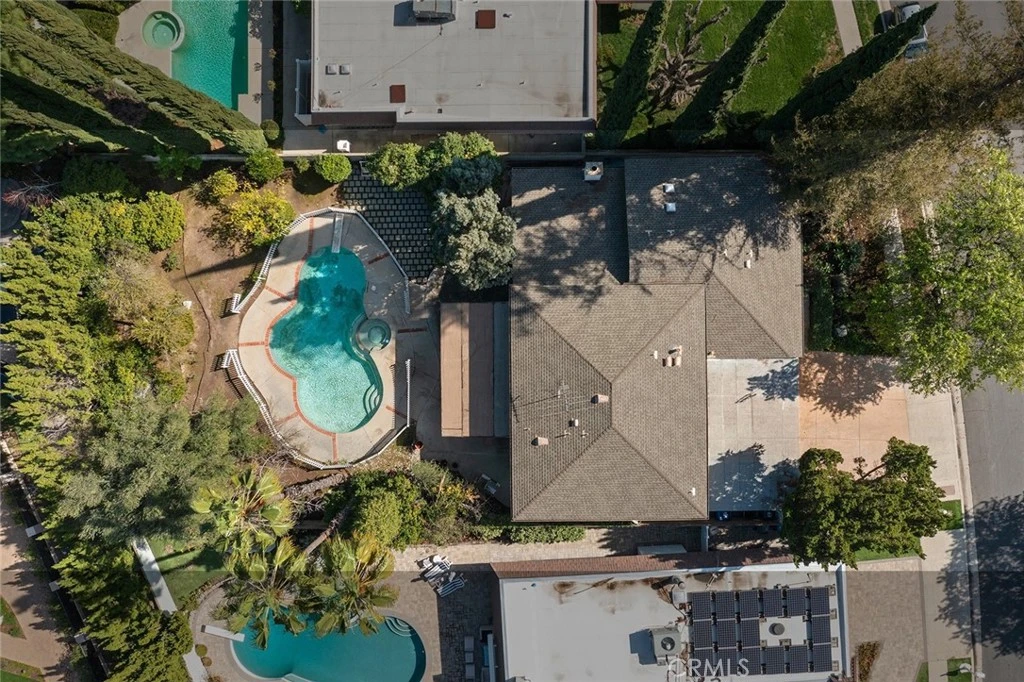 Incredible opportunity to purchase a Mid-Century timepiece offered on the market for the first time in almost 50 years. Located on a quiet cul-de-sac West of Valley Circle, the sprawling property sits on an impressive 11,000+ SF completely flat lot, with one of the largest usable backyards in the neighborhood. Wide frontage is adorned with mature trees, lush landscaping, and driveway that leads to a 3-car attached garage. A tiled covered front porch with original double front doors opens to a grand entry foyer with original terrazzo tiled flooring, coat closet, and guest powder bathroom. The formal living room boasts gorgeous vaulted wood beamed tongue and groove ceilings, brick fireplace, and two sets of Pella glass sliders that open to the backyard. The formal dining room has direct kitchen access and another glass slider that opens to the covered patio. Separate family room has wood product walls, built-in bookshelves, and a stellar walk-in wood paneled wet bar with sink, wine storage, and custom built-ins. The spacious kitchen overlooks the yard and features island, peninsula, custom cabinetry, Sub Zero fridge/freezer, Thermador stovetop, double ovens, pantry space, and separate breakfast room with another slider that opens to the yard. The oversized primary suite is located on the first floor featuring large walk-in closet, original built-in desk with wardrobe closets, and private en-suite bathroom with dual sinks, walk-in shower, and separate roman soaking tub. Upstairs you will three additional well appointed bedrooms plus bonus loft that overlooks the living room with built-in bookshelves making it the ideal flex space for office or den. One of the secondary bedrooms has an en-suite bathroom and the other two share a large hall bath. There is also a laundry room with direct access to the 3-car garage with great storage. The entertainer’s backyard boasts freeform pool & spa, covered patio, BBQ center, full growth olive tree, mature palms, variety of fruit trees including fig/pomegranate/lemon, and an expansive area that extends beyond the pool with endless possibilities including guest house/court/etc. Adjacent to dining/shopping at the Westfield Mall/Village, The Calabasas Commons, Warner Center, & zoned for award-winning El Camino & Hale charter schools.