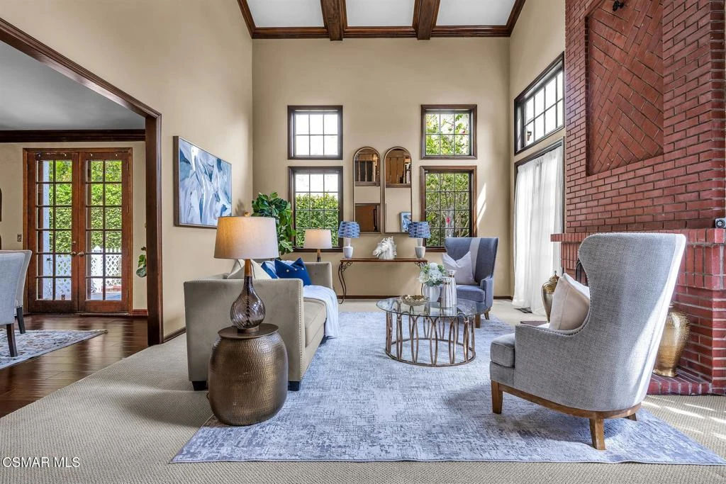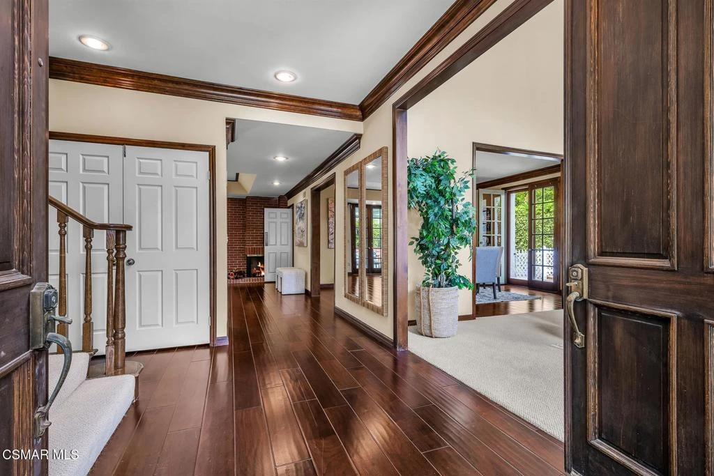 Tucked south of the Boulevard on a quiet cul-de-sac in Woodland Hills, this spacious two-story home offers over 3,700 square feet of well-balanced living space on an expansive lot of more than 13,000 square feet. Thoughtfully maintained over the years, the home reflects a sense of care and continuity that is felt throughout.Inside, the home is defined by soaring vaulted ceilings and beautiful wood detailing that bring warmth and character to the main living spaces. The living room and family room offer an impressive sense of volume, each anchored by its own fireplace, adding both comfort and architectural presence. Natural light filters throughout, creating an inviting and open atmosphere.The home features four bedrooms and four bathrooms, including a highly desirable bedroom and full bathroom on the main level, ideal for guests, extended family, or flexible living arrangements. Wood flooring runs through the main living areas, adding to the home's warmth and flow.The kitchen is equipped with a Wolf double oven, gas range, wine refrigerator, and generous workspace, designed for both everyday living and entertaining.Upstairs, the primary suite offers a private retreat with THREE walk-in closets, a fireplace, and ample space, set apart from the secondary bedrooms. The additional bedrooms are well-sized and thoughtfully positioned, providing versatility for a variety of needs. Dual HVAC systems serve both levels of the home.The backyard offers a peaceful and private setting with a pool and spa, along with plenty of space to relax, entertain, or personalize to your vision. Mature landscaping and the depth of the lot enhance the sense of privacy that is increasingly hard to find.Located near top-rated schools and just minutes from Calabasas Commons, The Village, and Westfield Topanga, and the Rams training facility, this home also offers convenient access to hiking trails and a scenic drive to Malibu. It combines space, architectural character, and location in one of Woodland Hills' most desirable settings.