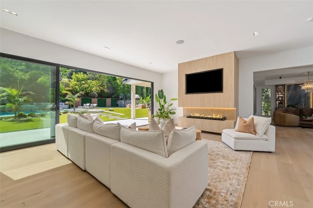 Completely reimagined with designer finishes throughout, this exceptional estate is located within the prestigious 24-hour guard-gated community of Westchester County Estates. Offering 6 bedrooms, 8 bathrooms, and over 6,500 sq ft on a nearly 22,000 sq ft lot, this residence blends architectural elegance with modern California living. A dramatic double-height entry introduces warm wide-plank flooring, custom ironwork, and an abundance of natural light. Formal living and dining rooms are both refined and inviting, while a private lounge featuring a temperature-controlled wine display creates a sophisticated space for entertaining. Multiple fireplaces, including in the living room, family room, and primary suite, add warmth and ambiance throughout. The expansive family room features a sleek statement fireplace and opens seamlessly to the outdoors through oversized pocket doors. The chef’s kitchen is beautifully appointed with a large center island, dual sinks, walk-in pantry, butler’s pantry, and custom cabinetry. Upstairs, a versatile bonus room with balcony complements the spacious en-suite bedrooms. The primary suite is a true retreat with fireplace, sitting area, dual walk-in closets, and a spa-caliber bath with steam shower, soaking tub, and heated floors. The resort-style backyard is designed for both relaxation and entertaining, featuring a pool and spa with waterfall, outdoor kitchen and bar, expansive turf, and a sports court, all surrounded by lush, mature landscaping for ultimate privacy. All of this, set within a prestigious 24-hour guard-gated community, offering an exceptional blend of luxury, privacy, and security.