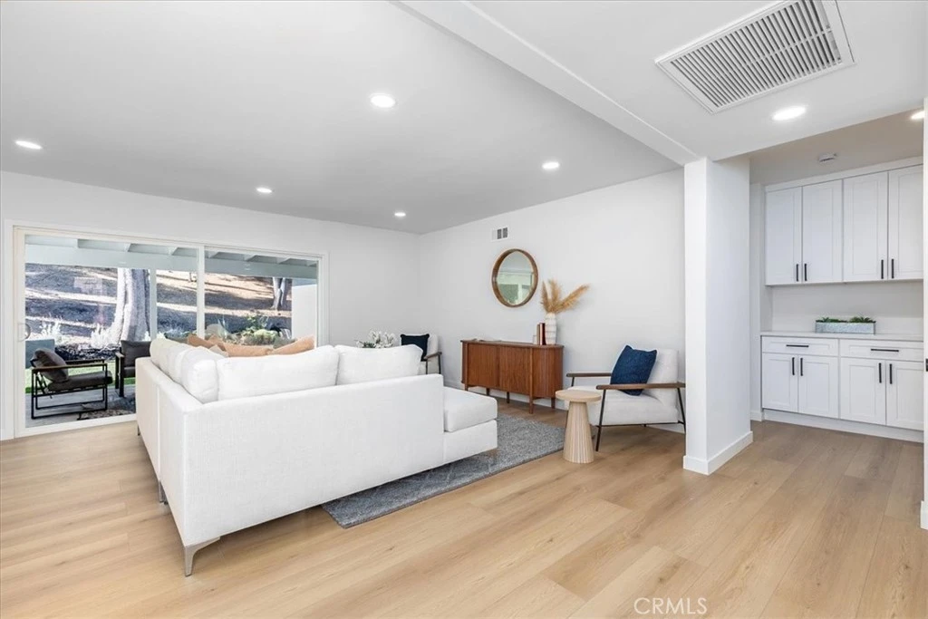 Tranquility awaits at this incredibly soulful retreat in one of the most coveted pockets of Woodland Hills. Set amongst an abundance of mature trees and situated on a expansive homesite, this stunning residence makes you feel like you're a world away from the city, while conveniently located just a short distance to all of the fantastic shops, restaurants, and markets that Woodland Hills and nearby Calabasas have to offer. Step through the charming entry to find open and airy spaces, all of which are impeccably designed and exude the utmost attention to detail. The dining room and spacious family room have sliding doors that open to the serene outdoors. The light-filled formal dining room flows seamlessly into the kitchen for effortless entertaining. The impressive kitchen is a Chef's dream and is well-appointed with stainless steel appliances - ample cabinet and countertop space, tons of natural light. An adjoining laundry room provides extra storage and garage access. Three generously sized guest bedrooms offer leafy views and share a beautifully designed bathroom with new tile in the shower and marble tile flooring. The home's primary bedroom is simply heavenly, featuring ample closet space, and a spa inspired en-suite bathroom with a marble tiled shower that is bathed in light. Sliding glass doors lead you to the absolutely magical outdoors. Here you'll discover a sprawling yard with multiple areas to lounge and dine, and fire pit, all while experiencing total privacy and looking out to a canopy of trees in every direction. The dreamy outdoor spaces provide the perfect setting for weekend brunches and dinner parties with family and friends. Additional features of the property include new windows, new roof and a new water heater. This is Southern California living at its best.