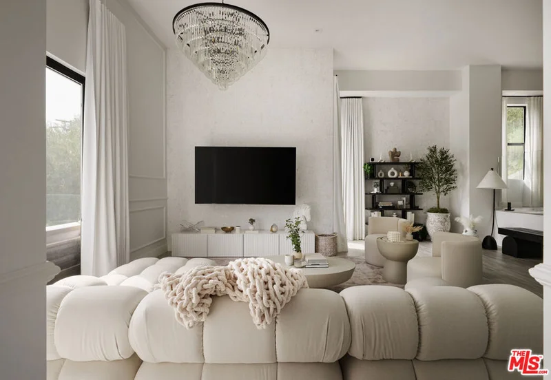 Nestled in the tranquil hills of Woodland Hills, this 2019-built modern residence exemplifies the seamless fusion of luxury and contemporary design. Located south of Ventura Boulevard, this exceptional property offers both refined elegance and intimate comfort, making it a true architectural gem. Upon entering, the home immediately captivates with its soaring ceilings and expansive, open-concept layout, flooded with natural light. Custom drapery frames the windows, adding a sophisticated touch to the space. Recessed lighting accentuates the airy atmosphere, creating a perfect balance between modernity and warmth. In a masterful play of light and texture, custom wallpaper imported from Italy delicately finished with 24k gold leaf adds a whisper of luxury and an artist's touch to the walls. The chef's kitchen, features a striking center island, a unique Mediterraneo Macchia Antica porcelain backsplash and countertops. Premium stainless-steel appliances, making it an ideal space for culinary enthusiasts. The adjacent family room, anchored by a cozy fireplace, invites both intimate gatherings and entertaining. Upstairs, the primary suite provides a luxurious retreat. The redesigned bath offers a spa-like sanctuary, complete with dual sinks, a freestanding tub, and a separate walk-in shower. A spacious walk-in closet ensures ample storage, while the private balcony presents sweeping views of the serene surroundings. The home includes two additional generously sized bedrooms, each thoughtfully designed for comfort and style. The lower level has a dedicated office/bonus room which offers flexibility for work or leisure, catering to a variety of lifestyles. The residence is equipped with the latest in-home technology, including a NEST thermostat, Sonos surround sound throughout the entire home, dual-zone air conditioning, and a tankless water heater. Unbreakable glass has been installed for added security and peace of mind. The garage has been transformed into a state-of-the-art gym, complete with high-end equipment, custom flooring, and a sauna. Ideal space for both fitness enthusiasts and relaxation. Custom finishes throughout the home include lime-wash accents, adding a unique and timeless character to the property. Situated just moments from Ventura Boulevard and Westfield Topanga, residents are within easy reach of dining, shopping, and entertainment options, including movie theaters and chic boutiques. This Woodland Hills sanctuary is a rare find, offering a harmonious blend of thoughtful design, modern amenities, and unparalleled craftsmanship.
