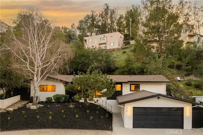 Welcome to this beautifully reimagined residence in the heart of Woodland Hills, offering modern luxury, thoughtful upgrades and designer sophistication throughout. This fully renovated 3BR and 2BA home showcases a bright open-concept kitchen and living area designed for today’s lifestyle. The stunning remodeled kitchen features brand new custom cabinetry, enhanced with LED lights, elegant Taj Mahal quartz countertops, and all-new stainless steel appliances, creating the perfect blend of beauty and functionality. A skylight floods the space with natural light, enhancing the airy and inviting ambiance. Every detail has been meticulously upgraded, including all new windows, interior and exterior doors, recessed lighting with halo effect throughout, and stylish designer finishes and fixtures. Accent panel walls add warmth and character, elevating the home’s contemporary aesthetic. The bathrooms have been fully remodeled with modern materials and refined finishes, offering spa-like comfort. Additional major system improvements provide both peace of mind and energy efficiency, including: Recently updated HVAC system, tankless water heater, new electrical plumbing, improved insulation in walls and ceilings, new washer and dryer are also included, making this home truly move-in ready. The private backyard offers a serene retreat ideal for both relaxing and entertaining. Tucked away on a cul-de-sac street in a prime South of the Boulevard location, close to fine dining and shopping at the Village and Topanga Social, and top-rated schools, this turnkey residence offers privacy, luxury, and convenience in one of Woodland Hills’ most sought-after neighborhoods.