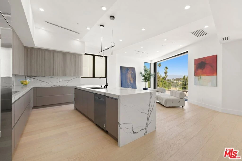 Hollywood Hills style meets Woodland Hills! Sophistication, style, and modern elegance in this stunning, newly constructed hillside estate property. Newly constructed and built from the ground up, this custom-designed home sits in the hills of Woodland Hills. The property delivers an elevated standard of luxury living with breathtaking panoramic views. Designed with a sleek, contemporary aesthetic, the home showcases glass railings, wide-plank hardwood flooring, custom LED lighting throughout and premium finishes. Multiple easily accessible decks capture sweeping views and vistas, all creating a seamless connection between indoor and outdoor living. At the heart of the home is a show-stopping chef's kitchen featuring custom Italian cabinetry, top-of-the-line stainless steel appliances, an oversized quartz island, and abundant counter space and storage. The open-concept floor plan flows effortlessly into expansive living and formal dining areas, ideal for both everyday living and entertaining. Floor-to-ceiling pocket doors open fully to spacious view decks on both the main level and upper retreat, enhancing the home's indoor-outdoor lifestyle. Custom LED lighting is thoughtfully integrated throughout.The luxurious primary suite offers a large custom mirrored closet with built-in storage and dressing areas, along with a spa-inspired bathroom complete with a soaking tub, oversized shower, and dual vanity. All additional bedrooms are en-suite and finished with high-end modern details and floating vanities. The lower level features a versatile office or bonus room with direct access to a covered outdoor lounge area. A dedicated media and game room creates the perfect setting for entertainment and movie nights. Additional highlights include a generously sized laundry room w/sink, wine storage, and a wet bar w/custom glass shelves. Further amenities include soaring ceilings, a smart home system with Nest integration, built-in speakers, and security cameras.Ideally located in a prime Woodland Hills neighborhood, this exceptional property is just moments from top dining, boutique shopping, and everyday conveniences. Situated within the highly sought-after Woodland Hills Charter Elementary and Middle School districts. Easy access to all shopping and locally acclaimed restaurants. A rare opportunity to own a newly built architectural home that perfectly blends elegance, design, and modern luxury.