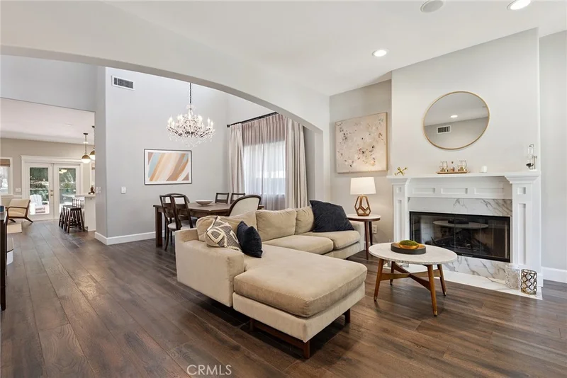 South of the boulevard gorgeous remodeled home originally built in 2002 located at the end of a cul-de-sac. Elevated above the street, the front yard features large covered front porch, mature landscaping, and driveway that leads to the 2-car garage with direct access. Step inside to find a completely open floor plan with designer finishes and custom details. The formal living room features a wood mantled fireplace, large picture window overlooking the front yard, and wide plank wood floors found throughout. A separate formal dining room has two-story soaring ceiling with direct kitchen access. Chef’s gourmet kitchen boasts center island with breakfast bar seating, quartz counters with custom soft close cabinetry, stainless appliances, pantry space with pullout drawers, and breakfast nook with built-in bench seating with additional storage. The kitchen opens directly to the separate spacious family room with French doors that open to the backyard. The first floor also features a downstairs bedroom ideal for guests or office space with access to a remodeled hall bathroom with walk-in shower. A separate laundry room has built-in storage cabinetry and access to the 2-car finished garage with overhead storage racks. Upstairs you will find three additional bedrooms plus an oversized loft/work space with built-in desks and storage - perfect flex space for play room/gym/etc. The luxurious primary suite is located on a private wing boasting double door entry, high vaulted ceiling, walk-in closet with second additional wardrobe closet, and en-suite remodeled bathroom with custom vanity with dual sinks, quartz counter, built-in linen storage, soaking tub, walk-in shower, and separate toilet room. The two well appointed secondary bedrooms each have closets with built-ins and they share a remodeled hall bathroom with custom vanity, dual sinks, bath tub, and shower. The private backyard features large patio with overhead string lights perfect for entertaining and dining alfresco, built-in gas fire pit, & lush landscaping with mature trees that provide wonderful shade. Adjacent to dining & shopping at the Calabasas Commons, nearby markets including Bristol Farms & Trader Joes, close proximity to the Westfield Mall/Village & Warner Center, and zoned for highly acclaimed Calabash elementary, Hale and El Camino charter schools.