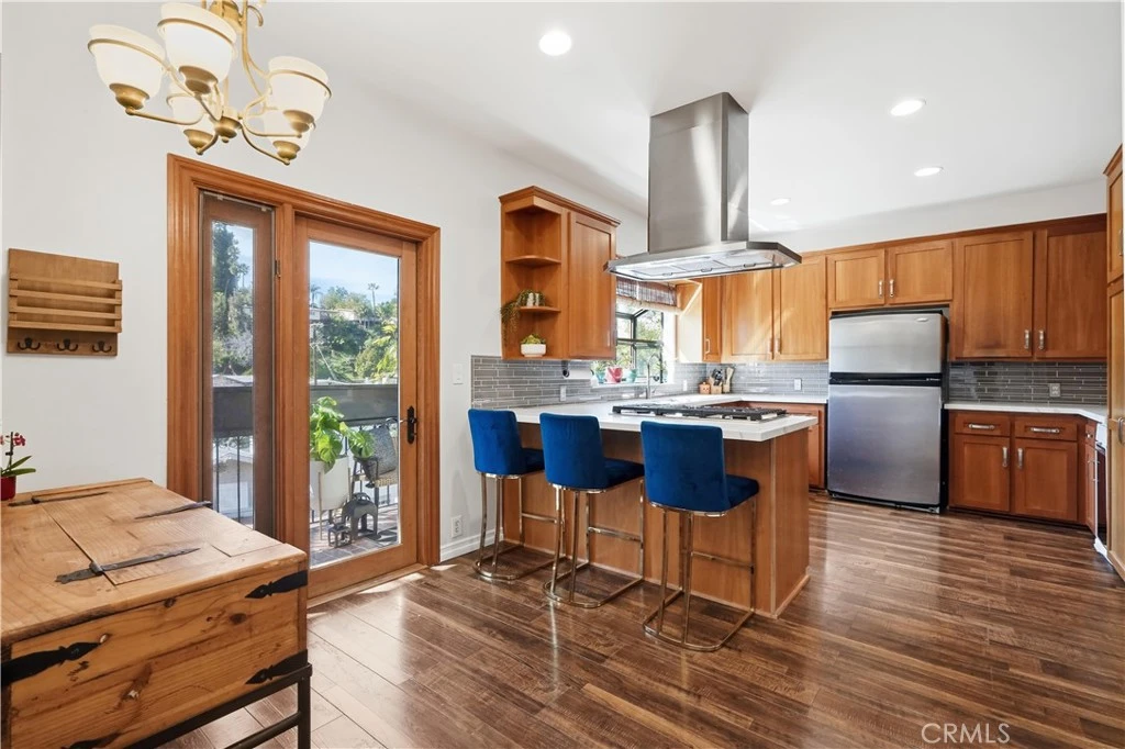Discover the perfect blend of modern luxury and hillside charm in this exquisite 3-bedroom, 3-bathroom residence, perfectly situated South of Ventura Blvd. Spanning 1,642 sq. ft. of meticulously designed living space, this home greets you with soaring vaulted ceilings, warm floors, and a stunning cathedral window that frames the living room in natural light. For the tech-savvy, the living area is pre-wired with 5.1.2 Dolby Atmos surround sound, anchored by a sleek stone tile fireplace. The gourmet kitchen is a chef’s dream, featuring sleek quartz countertops, a breakfast nook, and a high-end appliance suite including a Monogram 5-burner cooktop and two wall ovens Miele combi-steam/convection oven. Step just a few steps up to the elegant dining room, where custom glass railings and exposed wooden beams create a sophisticated atmosphere for entertaining. The upper level is dedicated to luxury with two spacious master suites. The primary retreat is a true "oasis," offering three closets and a spa-like bathroom complete with a large slate walk-in steam shower. Sliding doors lead to an expansive upper deck—the ideal spot for evening cocktails while taking in panoramic views of the canyons and the twinkling lights of Warner Center. Outside, the 8,182 sq. ft. lot offers endless possibilities. From the kitchen balcony, perfect for morning coffee to a multi-functional backyard with a foundation for a gym or jacuzzi, there is even potential for an ADU. Complete with a 2-car garage and additional driveway parking, you are minutes away from top-tier dining, hiking, and the beach. Welcome home to Baza Avenue!