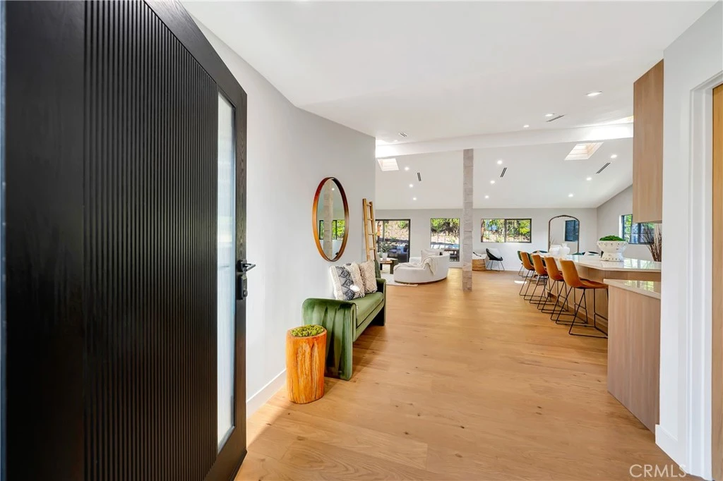 Set on a 14,165 sq. ft. flat and private lot in prime Woodland Hills, this stunning modern farmhouse offers the ultimate blend of luxury, space, and seclusion This fully remodeled and expanded modern farmhouse, with the required permits and OK for CofO, sits on a spacious, private flat lot and has been reimagined from top to bottom with luxury finishes and modern upgrades. Virtually everything is new, including pool, backyard, patio, electrical, plumbing, roofing, HVAC, and more—making this home completely turnkey. The open-concept floor plan boasts vaulted ceilings, wide-plank water proof wood floors, skylights, and expansive black-framed windows that flood the home with natural light. The chef’s kitchen features custom cabinetry, a stone waterfall island, high-end appliances, and a walk-in pantry—opening to a spacious dining area and great room, ideal for entertaining. Retreat to the luxurious primary suite with vaulted ceilings, direct yard access, and a spa-like bath with dual vanities and a large walk-in shower. Three additional bedrooms, including a private mini suite, provide flexibility for family, guests, or office use. Step outside to a brand-new resort-style pool and spa, surrounded by a fully private backyard with smooth stucco Venetian-plaster walls. The redesigned outdoor space includes a turf play area and a covered patio/pergola lounge with string lighting and a built-in fire pit—perfect for year-round entertaining. Additional highlights include two brand-new HVAC systems, smart-home upgrades, a dedicated laundry room, RV parking with full hookups being installed, and a finished two-car garage equipped with electric vehicle power. Ideally located near top schools, shopping, and dining, this property combines privacy, luxury, and convenience—offering top-notch modern living in the Valley at its finest.