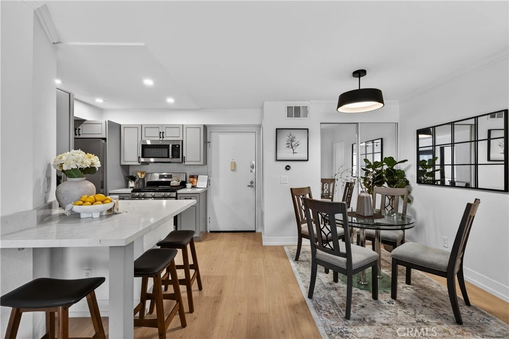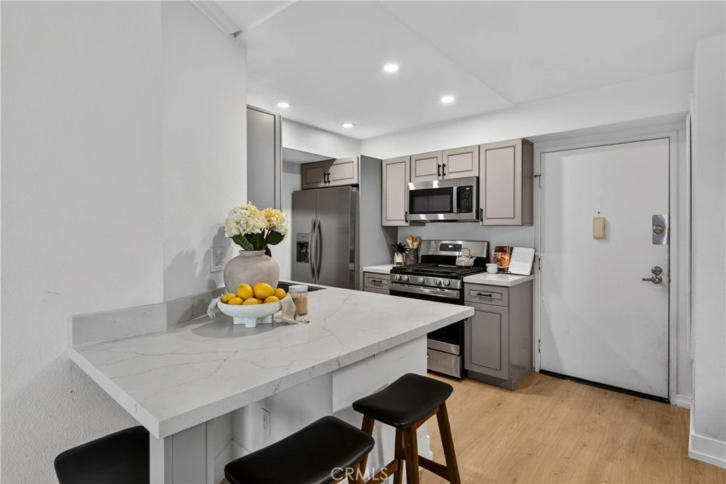 Discover this modern luxury in this beautifully upgraded 2-bedroom, 2-bathroom condo with an Amazing floorplan with both bedrooms featuring en-suite bathrooms. The kitchen is fully renovated with quartz countertops and new stainless steel appliances. Both bathrooms are thoughtfully remodeled with modern finishes such as lighting, hardware, fixtures and countertops. Upgraded new flooring and contemporary lighting fixtures throughout that enhance the condo's overall look and feel. A cozy fireplace with European white oak accents that adds warmth and charm to the living space. Newer Central HVAC system and newer water heater. There is a stackable washer & dryer inside the unit and this unit offers 2 tandem parking spaces. The Large balcony overseeing the courtyard nestled within the prestigious Met Community. There is a gate on Juliana which makes for easy access to unit. It’s a must see!
